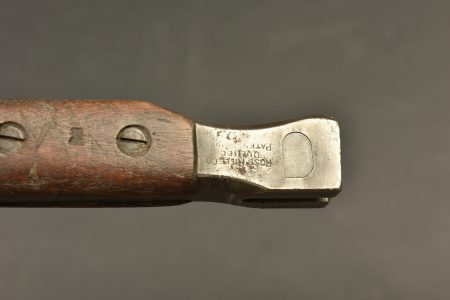 Baïonnette Canadienne Ross M1910 datée 1916. Pommeau marqué Ross Rifles Co Québec, daté 7/16, belle lame non aiguisée, avec son fourreau cuir à bouterolle interne. Bon état, usure et... en savoir plus
