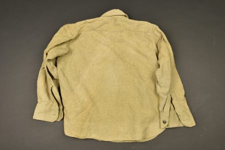 Chemise et pantalon court en laine kaki. Une chemise en tissu peigné kaki, nationalité et époque à déterminer mais potentiellement contemporaine du conflit. Plastron fermant par 4 boutons,... en savoir plus
