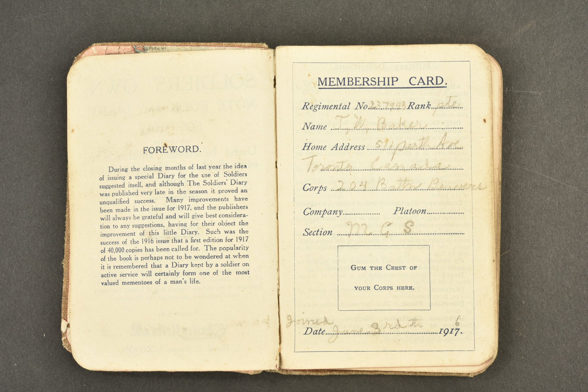 Lot de petits objets d'un soldat canadien du 204th Battalion