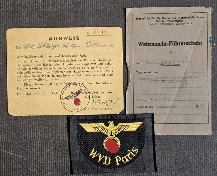 LOT SUR DEUTSCHE REICHSBAHN À PARIS , PERMIS DE CONDUIRE W.V.D, INSIGNE DE MANCHE W.V.D ET LAISSEZ-PASSER H.V.D. Tout d’abord militaire du mois de juillet 1940 au mois de juin 1942, la... en savoir plus