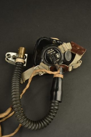 Bonnet de vol type C et masque à oxygène type E. Bonnet de volt Type C, en cuir marron doublé de peau de chamois. Disposant des rares plaques permettant la fixation des lunettes de vol MK IVB.... en savoir plus