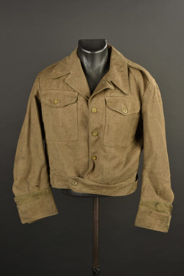 Blouson ETO. En drap type laine de serge. Tous les boutons sont présents. Sans marquages visible. Bas des manche rallongées. A noter une certaine usure et patine de la pièce, ainsi que de trous... en savoir plus