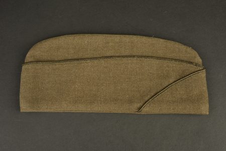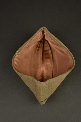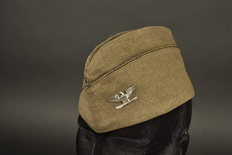 Calot de colonel US. En drap kaki, liseré du Corps des Officiers. Insigne de colonel, d’un modèle fantaisie après-guerre. Intérieur doublé en satinette rose. Sans marquages visibles. A... en savoir plus