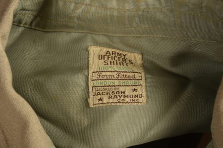 Chemise d’officier US. En tissu pink. Tous les boutons sont présents. Etiquette dans le col marquée Army Officer’s Shirt. Une cravate en tissu fortement décolorée par le soleil. A... en savoir plus