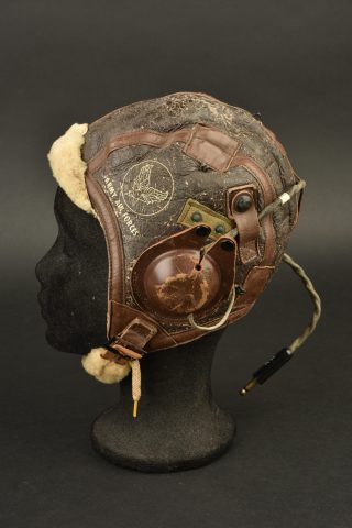 Bonnet de vol B-6. En cuir bicolore. Tous les boutons pressions sont fonctionnels. Les protèges écouteurs radio en cuir sont complets. Bel insigne Army Air Forces. Intérieur doublé en fausse... en savoir plus