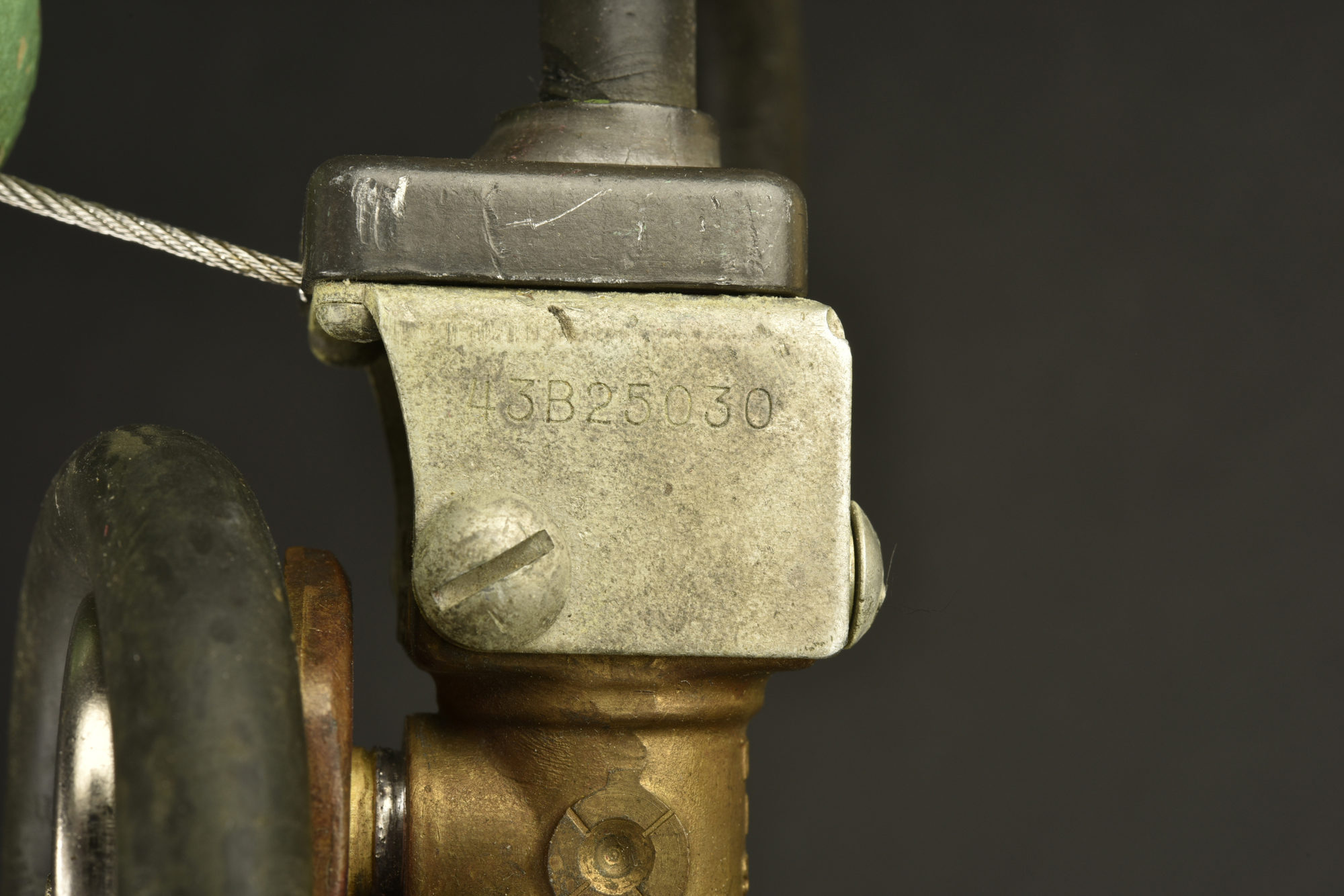 Bouteille à oxygène H-2. Bouteille complète de couleur verte. Le manomètre est présent, vide. Ouverture de la valve par la tirette finissant par une boule en bois verte. Flexible complet avec... en savoir plus