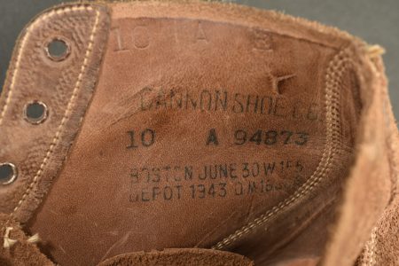 Brodequins de service US. En cuir retourné marron. Sept œillets de laçage. Les lacets d’origine sont présents. Semelles en caoutchouc marquée Good Year. Talon en caoutchouc Good Year.... en savoir plus