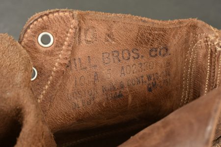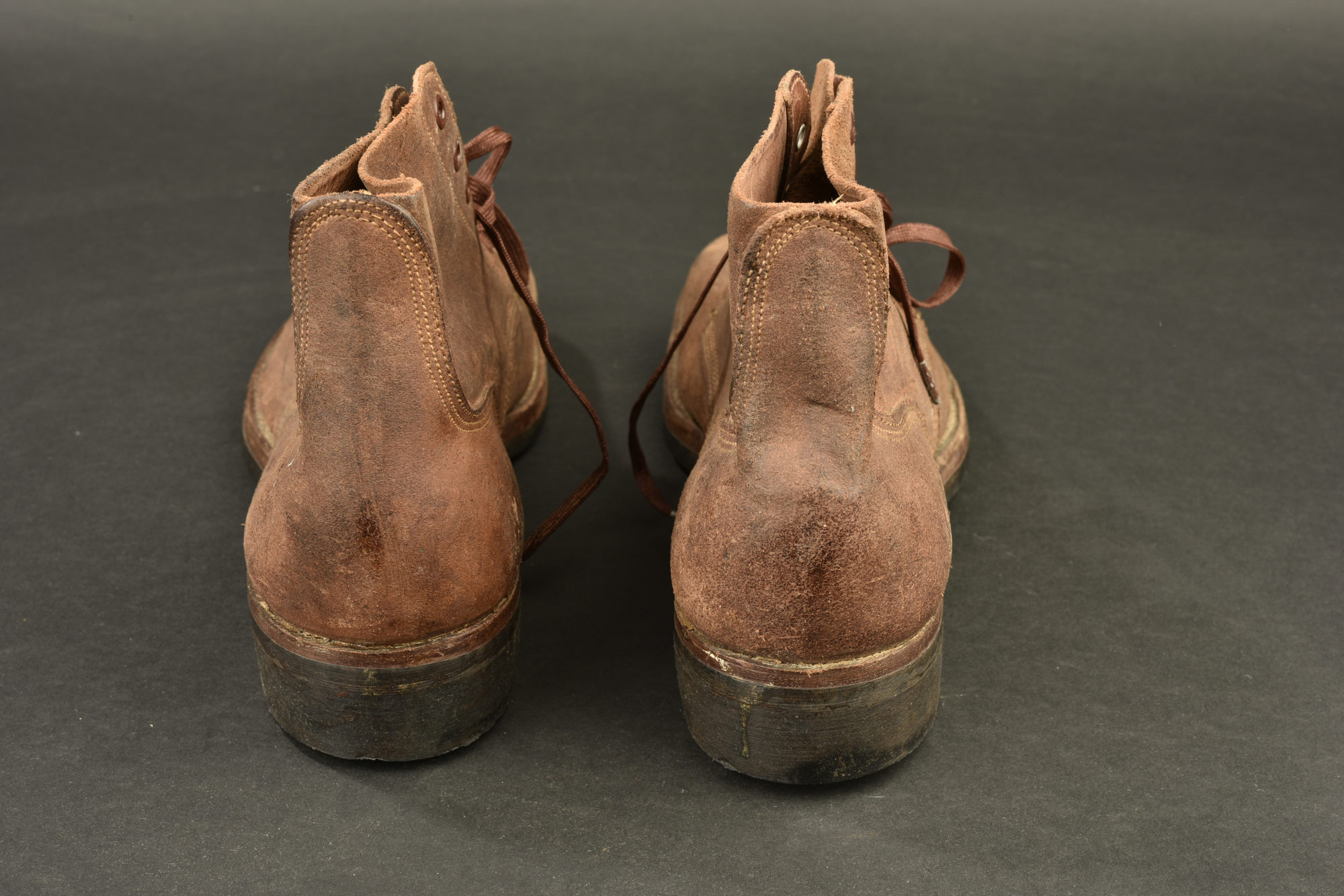 Brodequins de service US. En cuir retourné marron. Sept œillets de laçage. Les lacets d’origine sont présents. Semelles en caoutchouc marquée Slipknot. Talon en caoutchouc BFG Goodrich.... en savoir plus