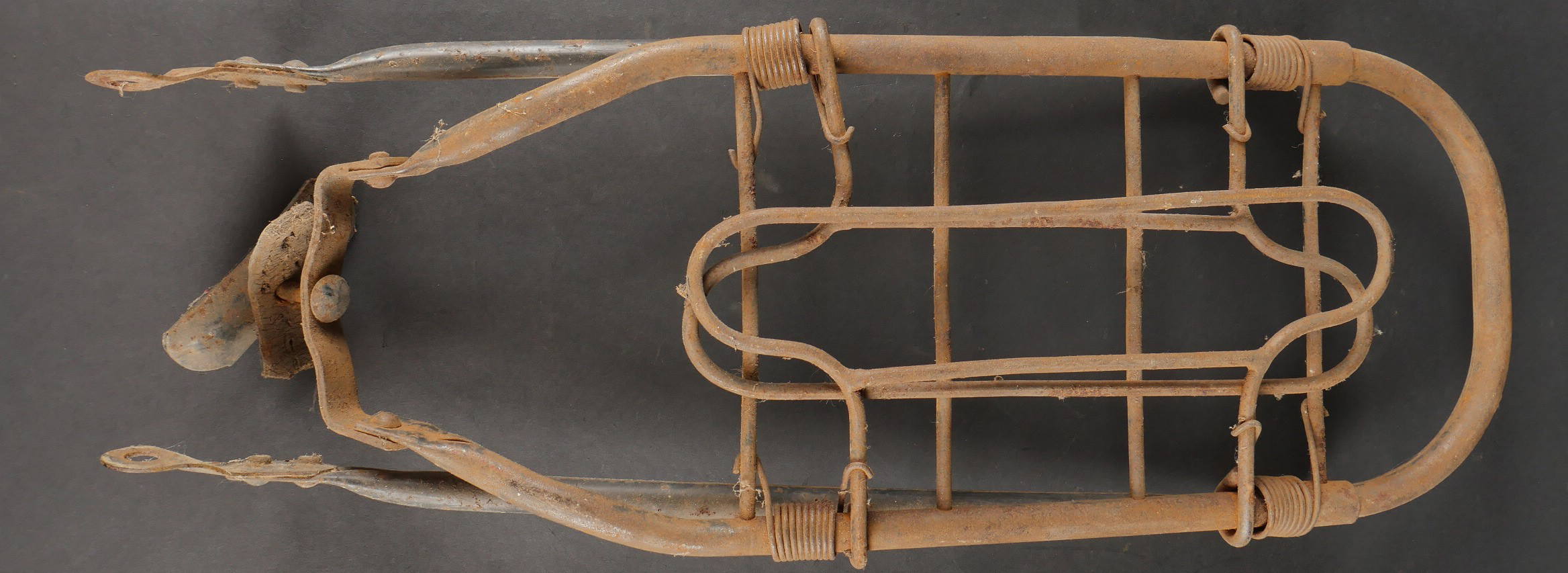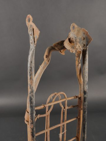 Détails de la vente >Caisse et porte bagage de Truppenfahrrad. Caisse en métal, peinte en noir avec colliers et sa sangle intérieure. Un porte bagage