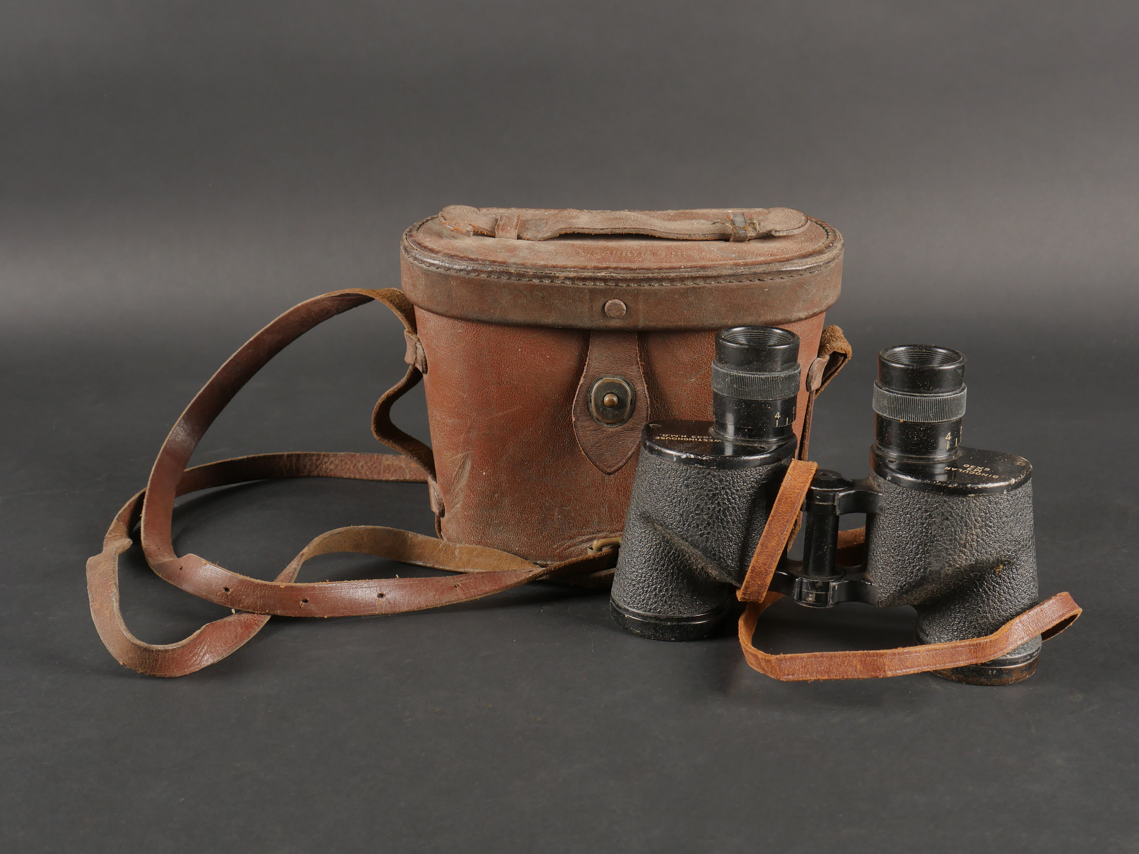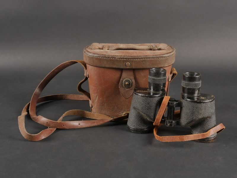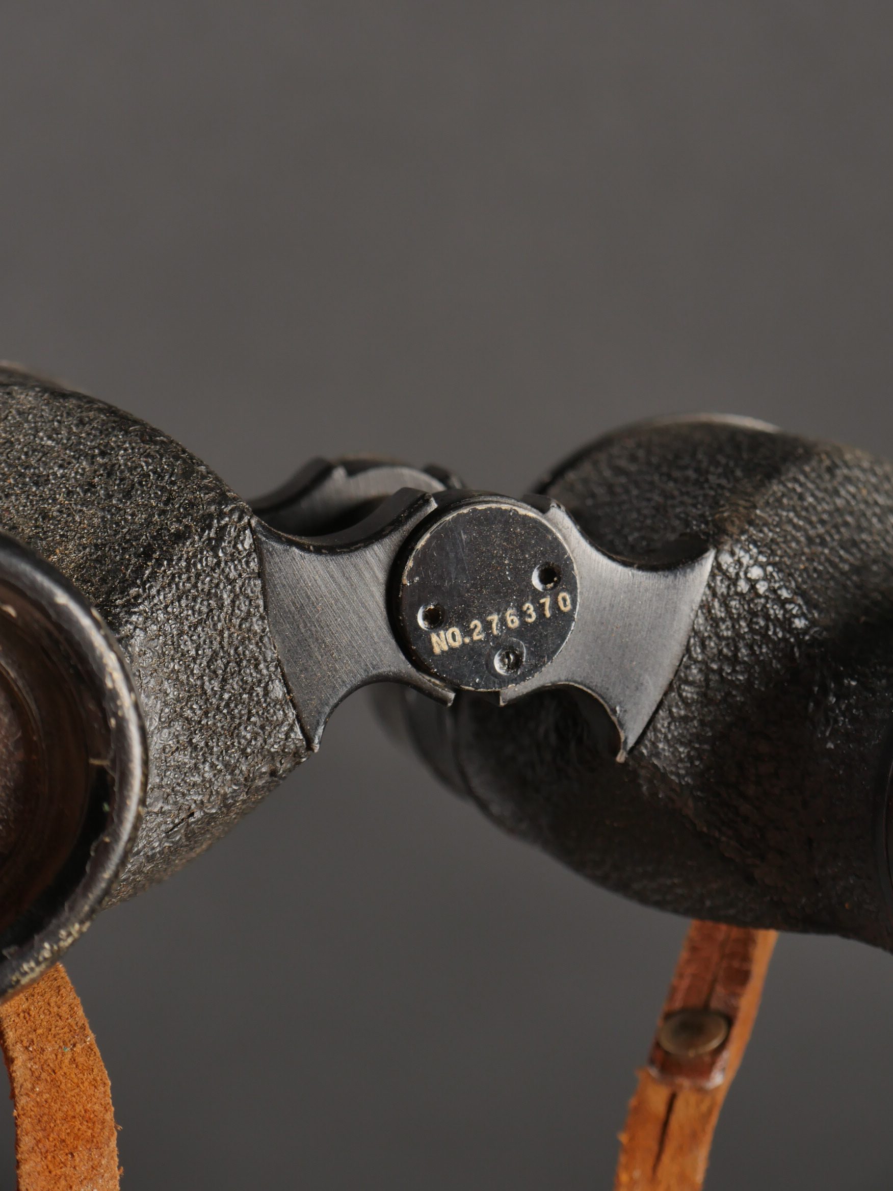 Détails de la vente >Jumelles US. Jumelles M3 datées 1943 de fabrication Westinghouse, sangle en cuir présente. Dans leur étui en cuir brun, couvercle désolidarisé.