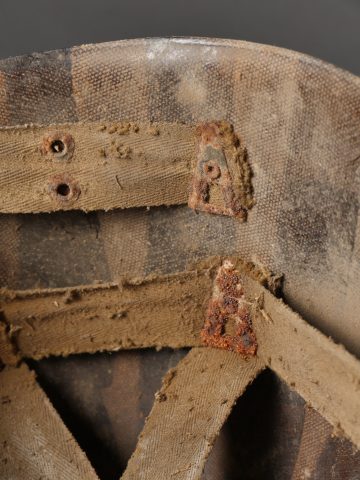 Détails de la vente >Liner de casque M1 sous officier. Beau sous casque pour coque M1 conservant une bonne partie de sa suspension toile d’origine, washers en acier peints en vert. Belle barre de sous officier... en savoir plus