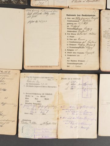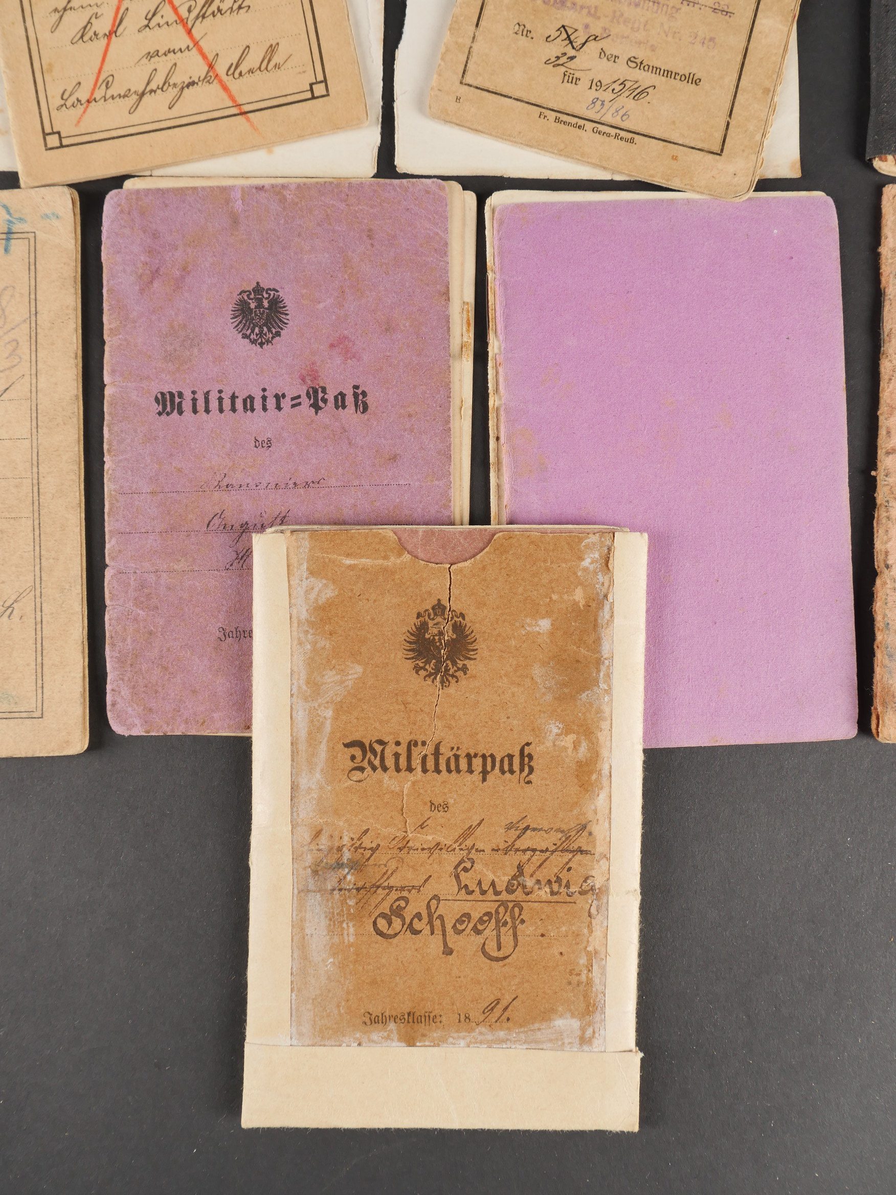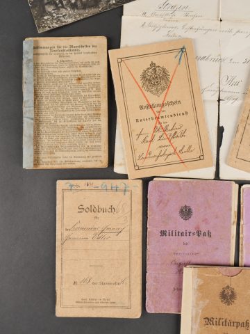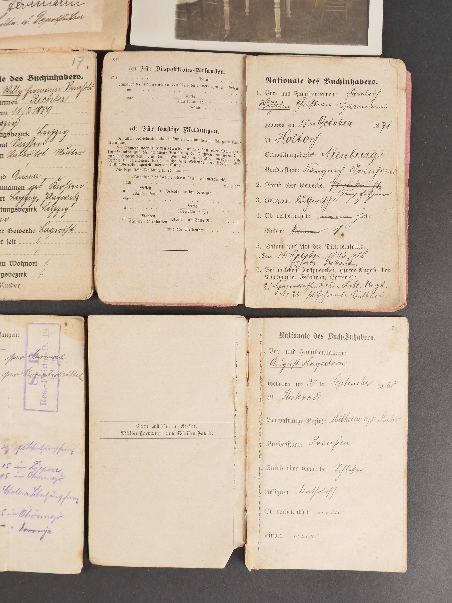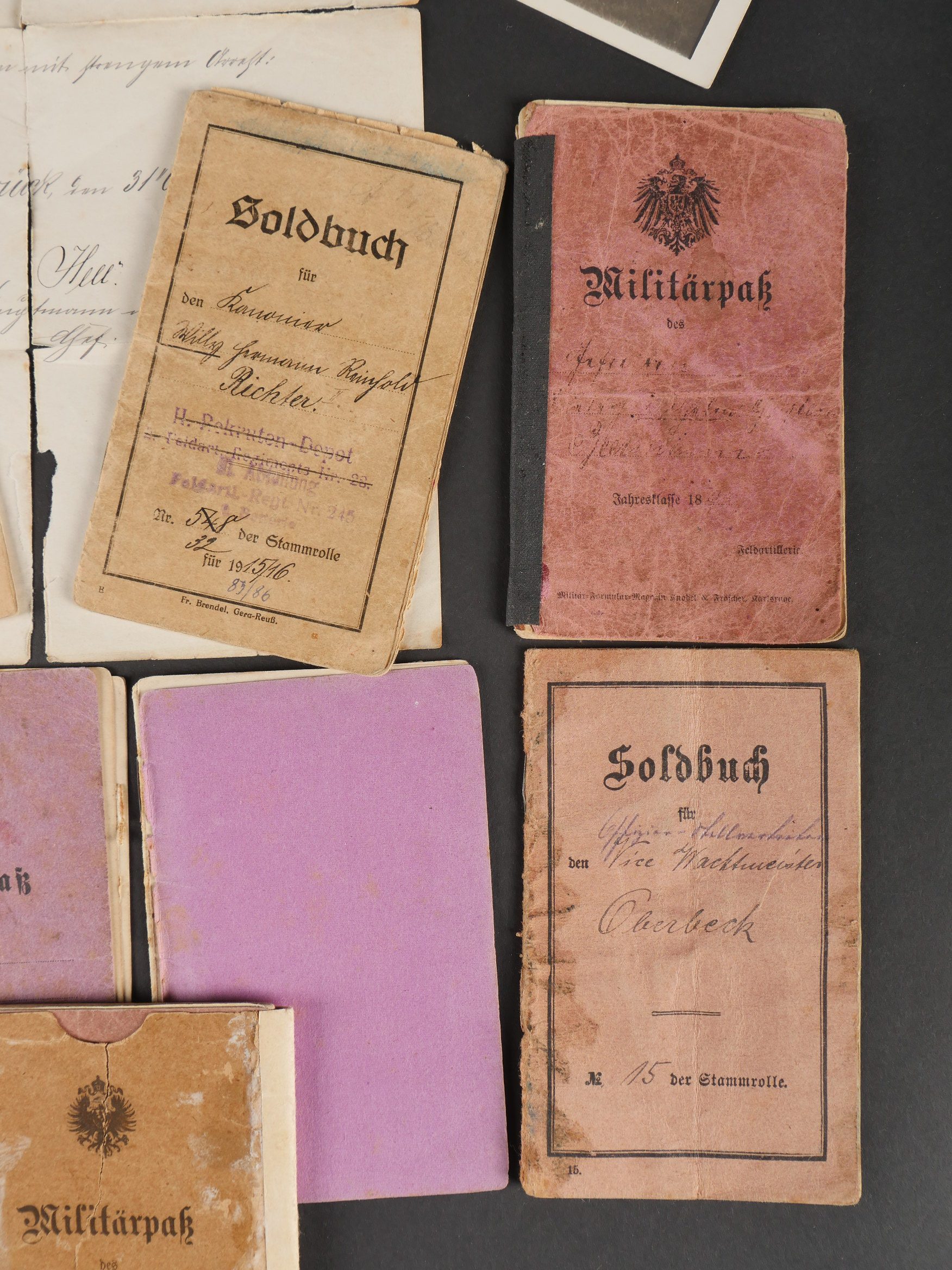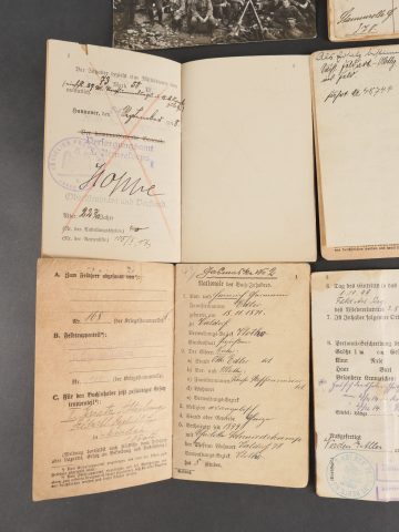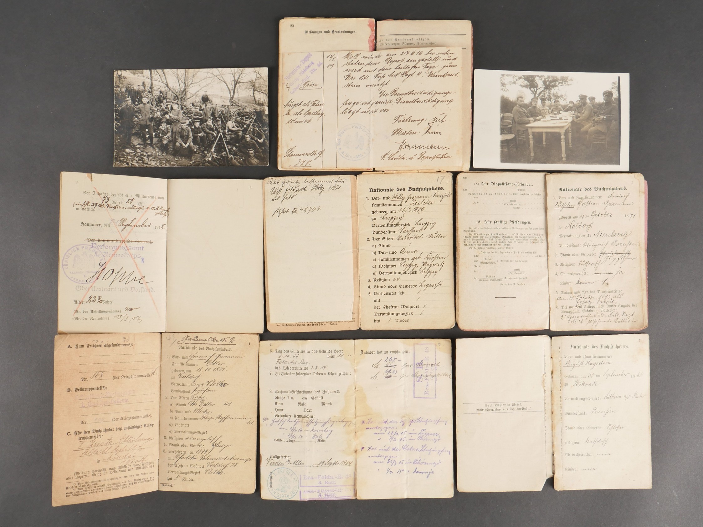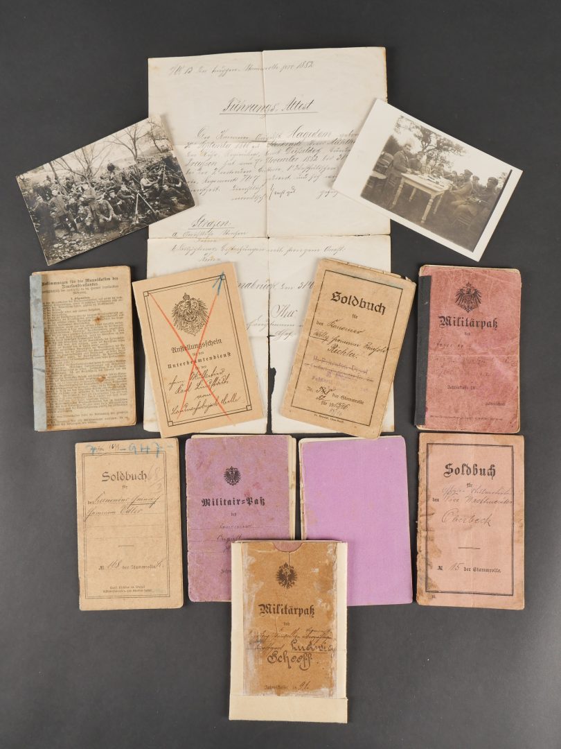 Lot de 9 Militarpass, livret et photos d’artilleurs de campagne. Diverses affectations et réaffectations dont FAR26, FAR245, FAR27, FAR69, FAR7, FAR22…