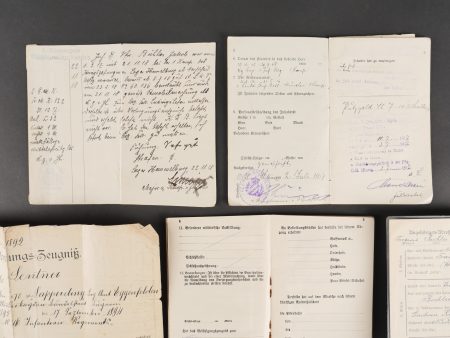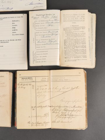 Détails de la vente >Lot de documents individuels bavarois WW1. Comprenant 4 Militärpass et 2 Soldbuch. Marquages au 1 Infanterie Regiment, Landwehr, Landsturm, Armierung Bataillon et divers
