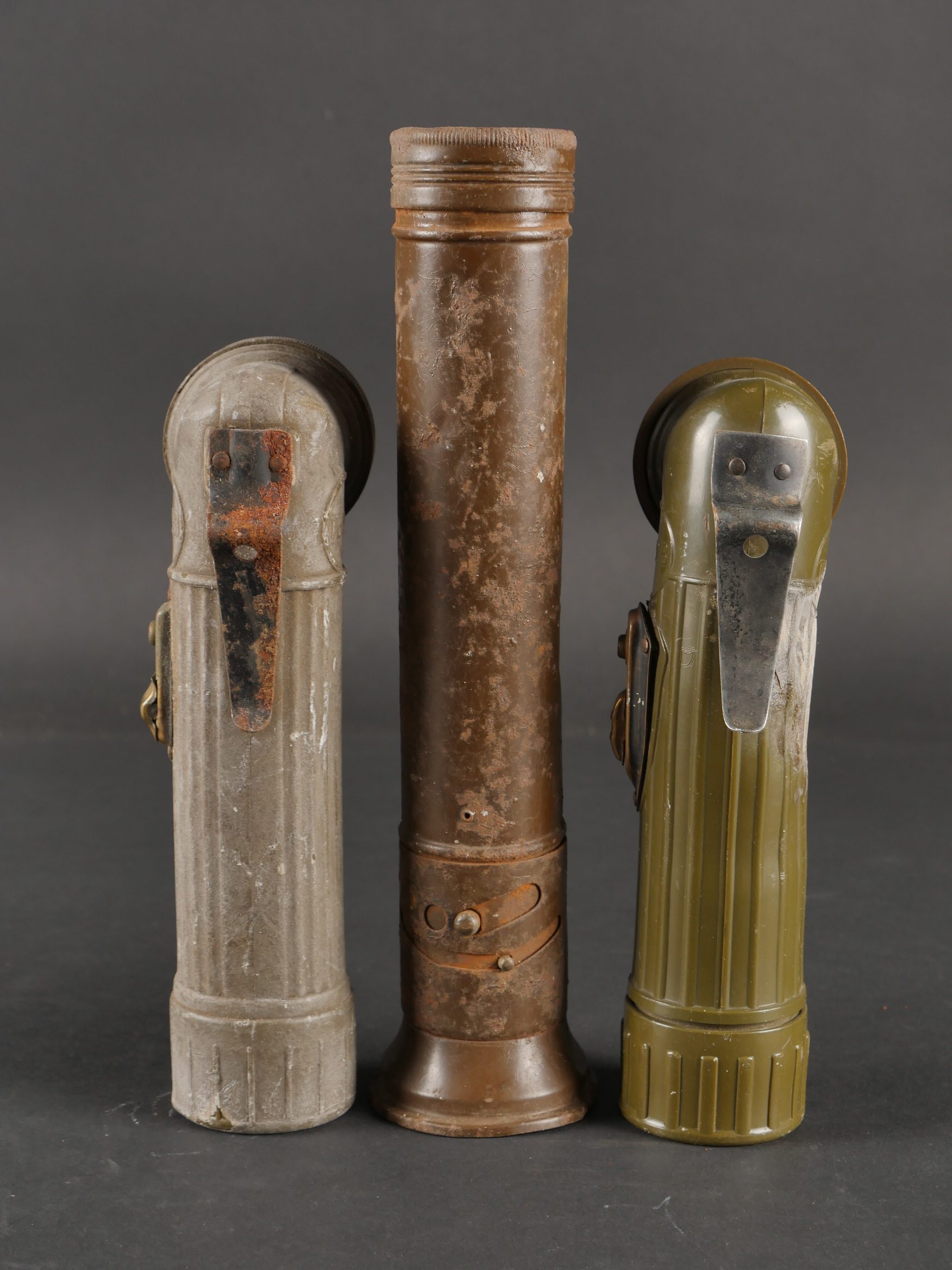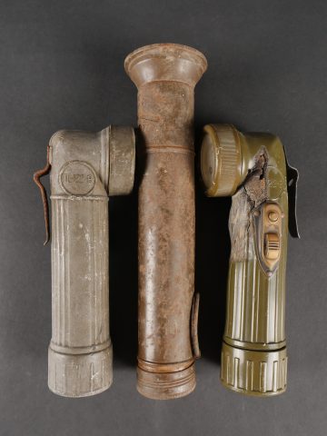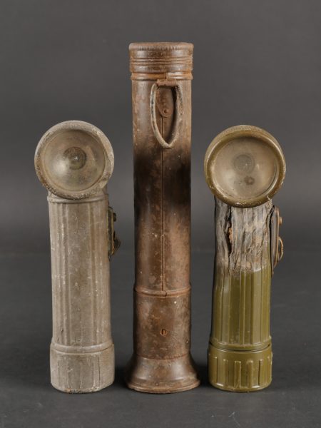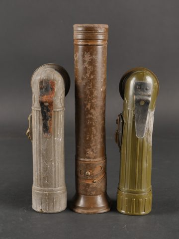 Détails de la vente >Lot de lampes de poche US. Deux TL122-B dont une avec ses piles et une Petrix avec sa pile du Signal Corps. Divers états de conservation.