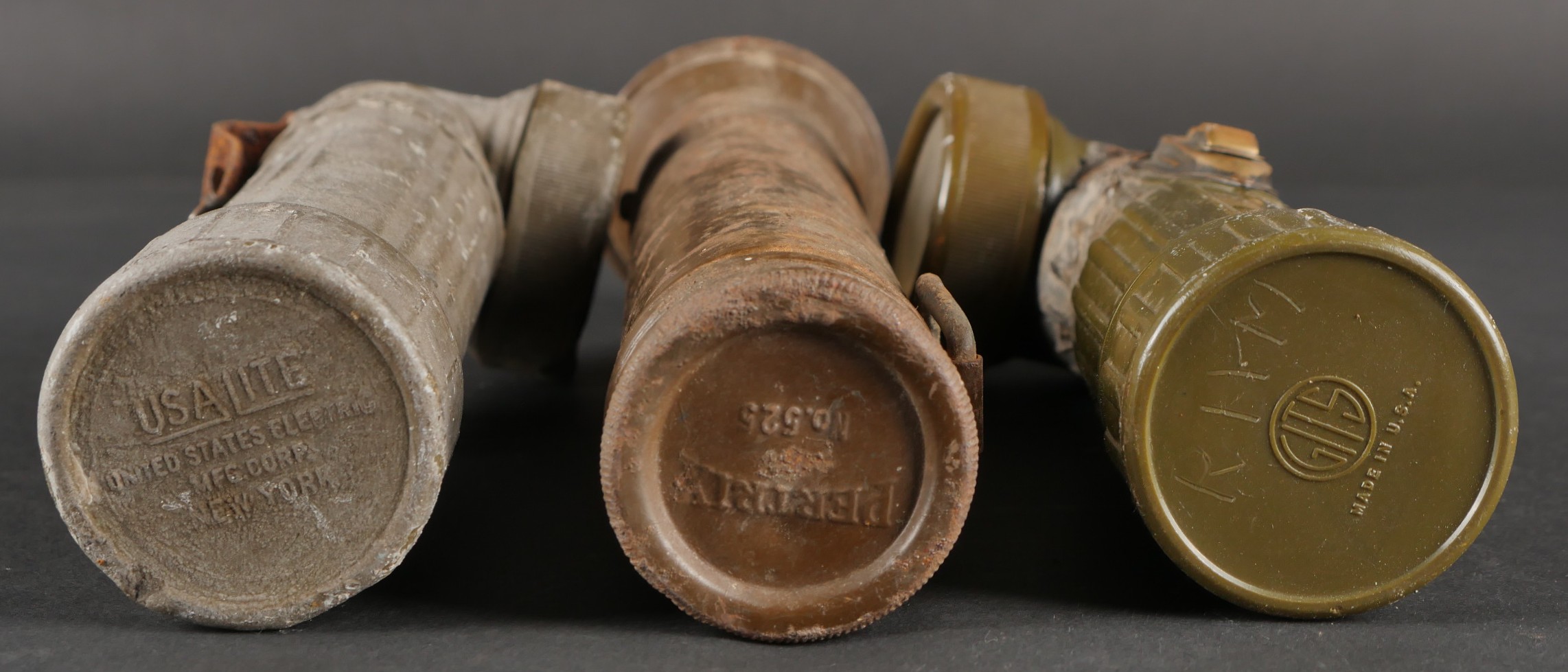 Lot de lampes de poche US. Deux TL122-B dont une avec ses piles et une Petrix avec sa pile du Signal Corps. Divers états de conservation.