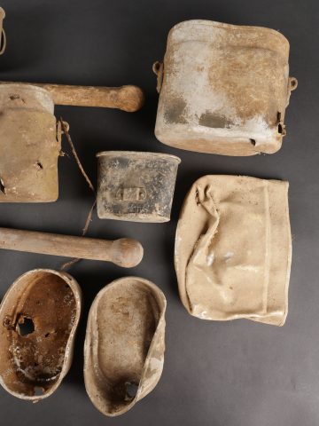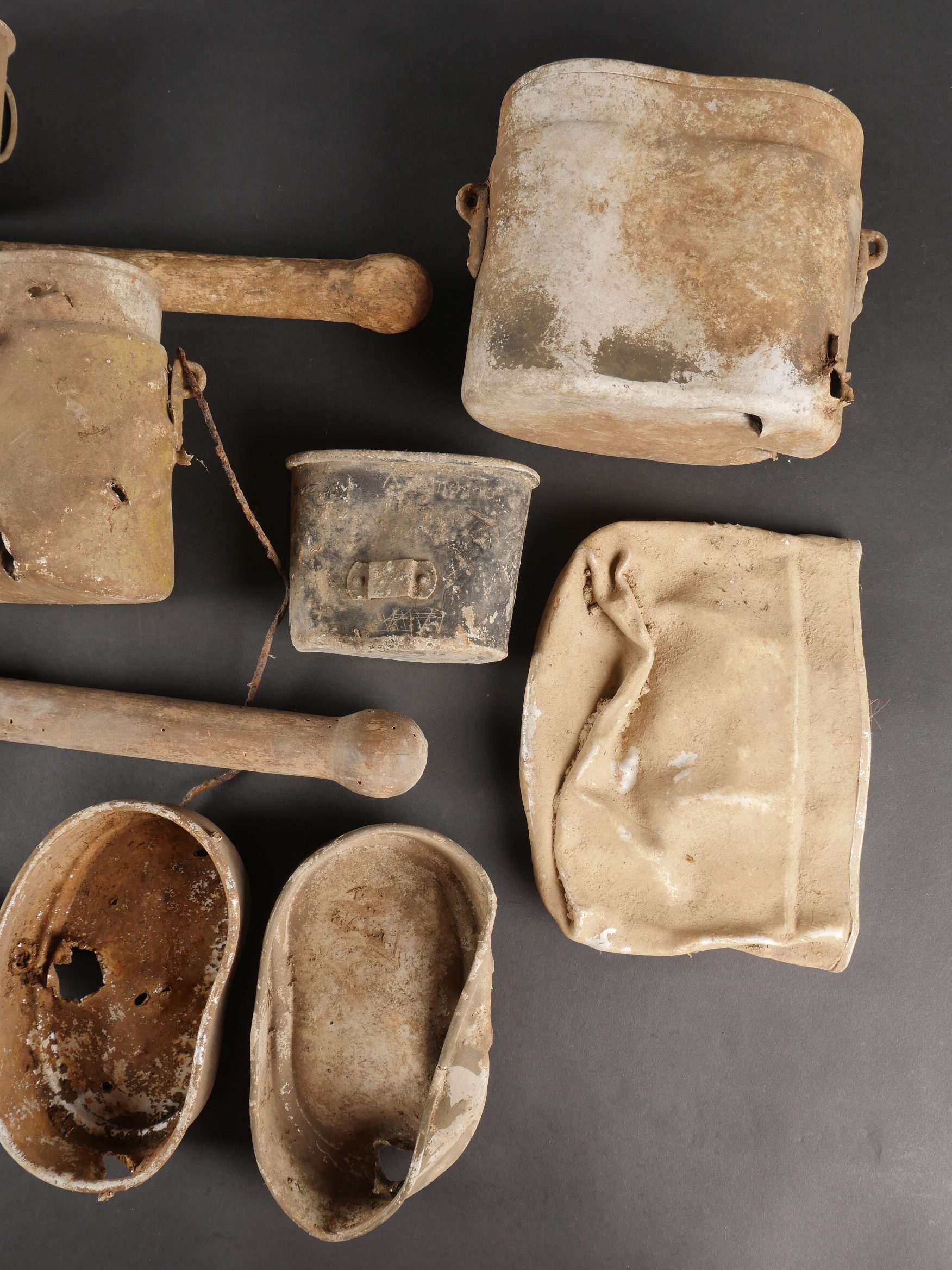 Détails de la vente >Lot de pièces allemandes à impact. Intéressant ensemble de pièces à impacts, témoins de la violence des combats de la bataille de Bastogne. Pelles, gamelles, quarts, gourdes…Plusieurs... en savoir plus