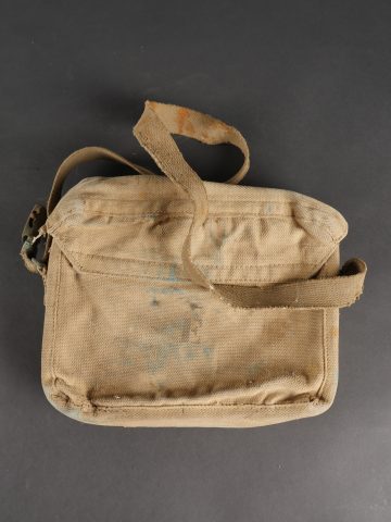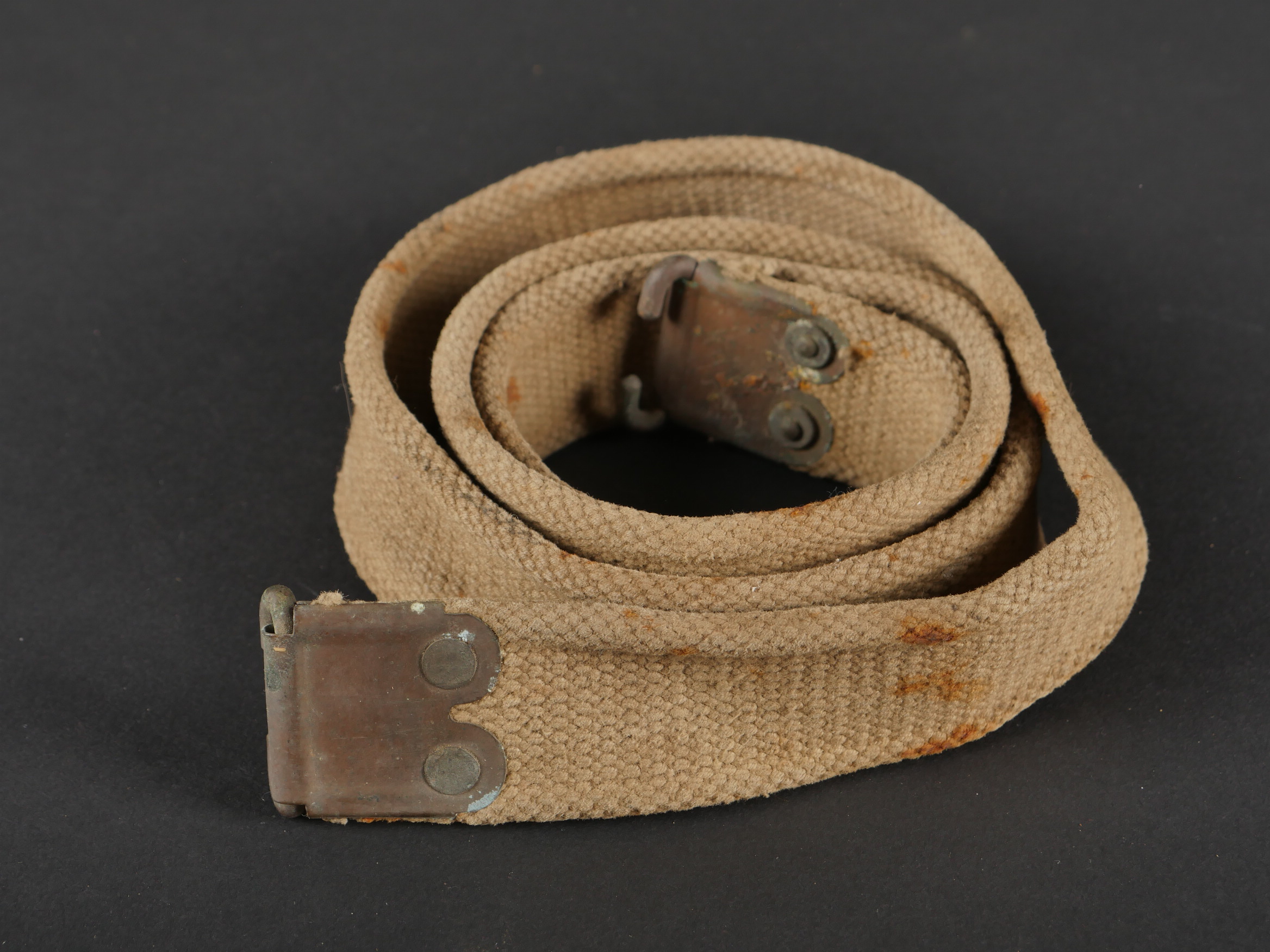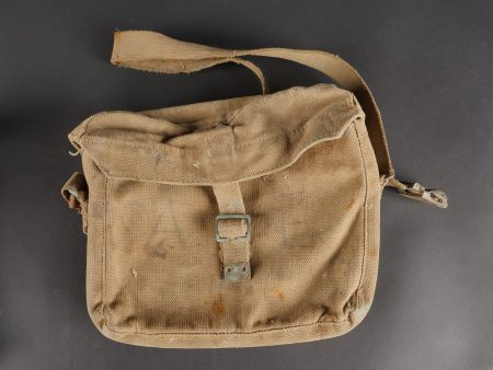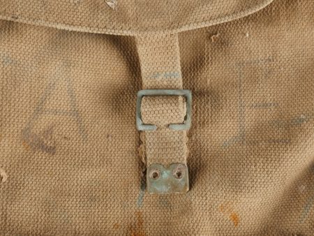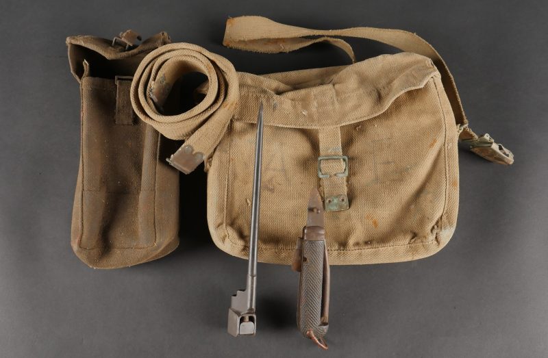 Lot d’équipement anglais WW2. Un porte baïonnette en Web. Une baïonnette clou sans fourreau. Une bretelle Enfield web, un pouch pattern 37, un satchel signal en web et une bretelle... en savoir plus