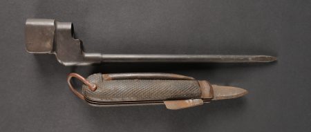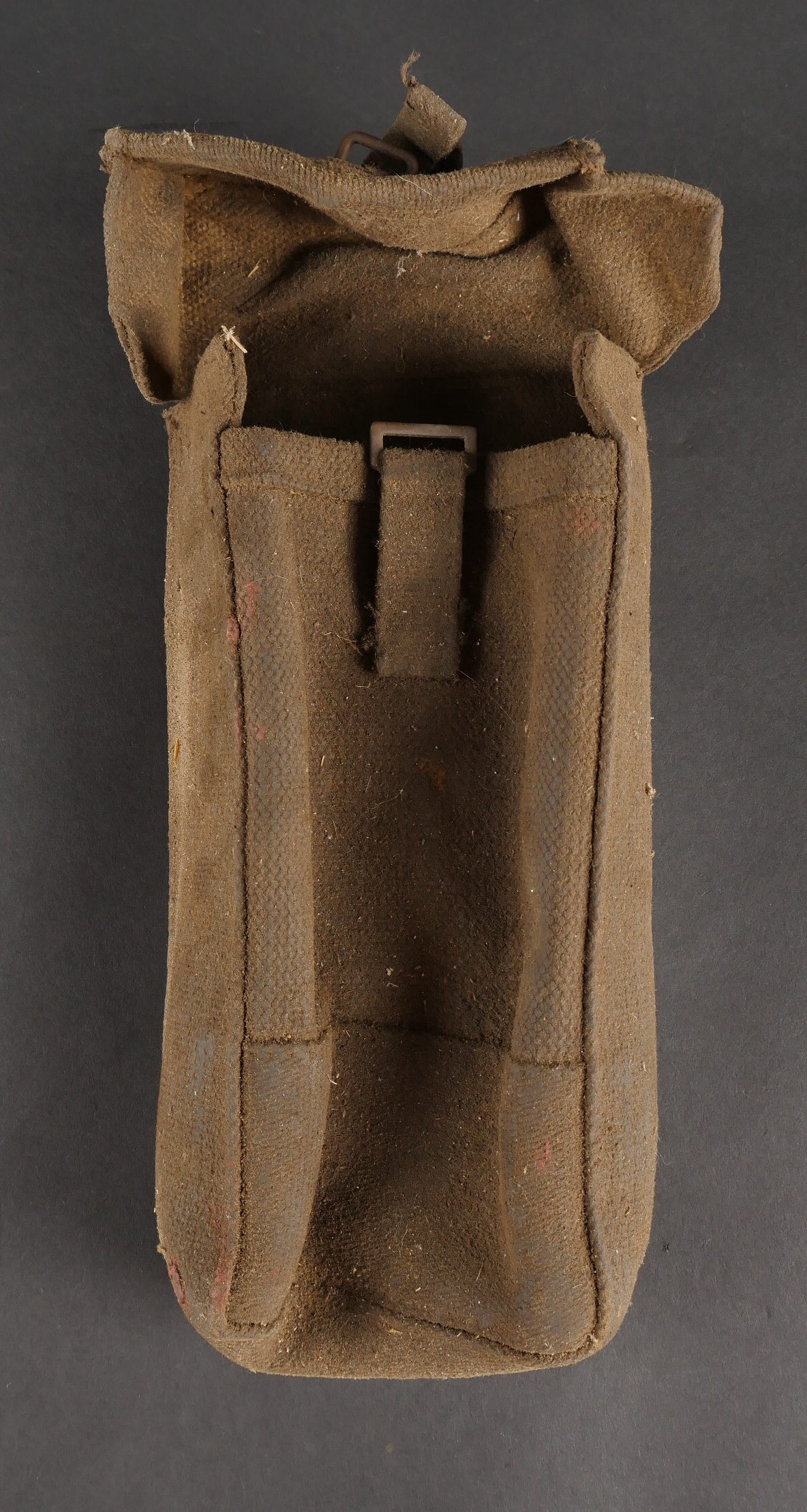 Détails de la vente >Lot d’équipement anglais WW2. Un porte baïonnette en Web. Une baïonnette clou sans fourreau. Une bretelle Enfield web, un pouch pattern 37, un satchel signal en web et une bretelle... en savoir plus