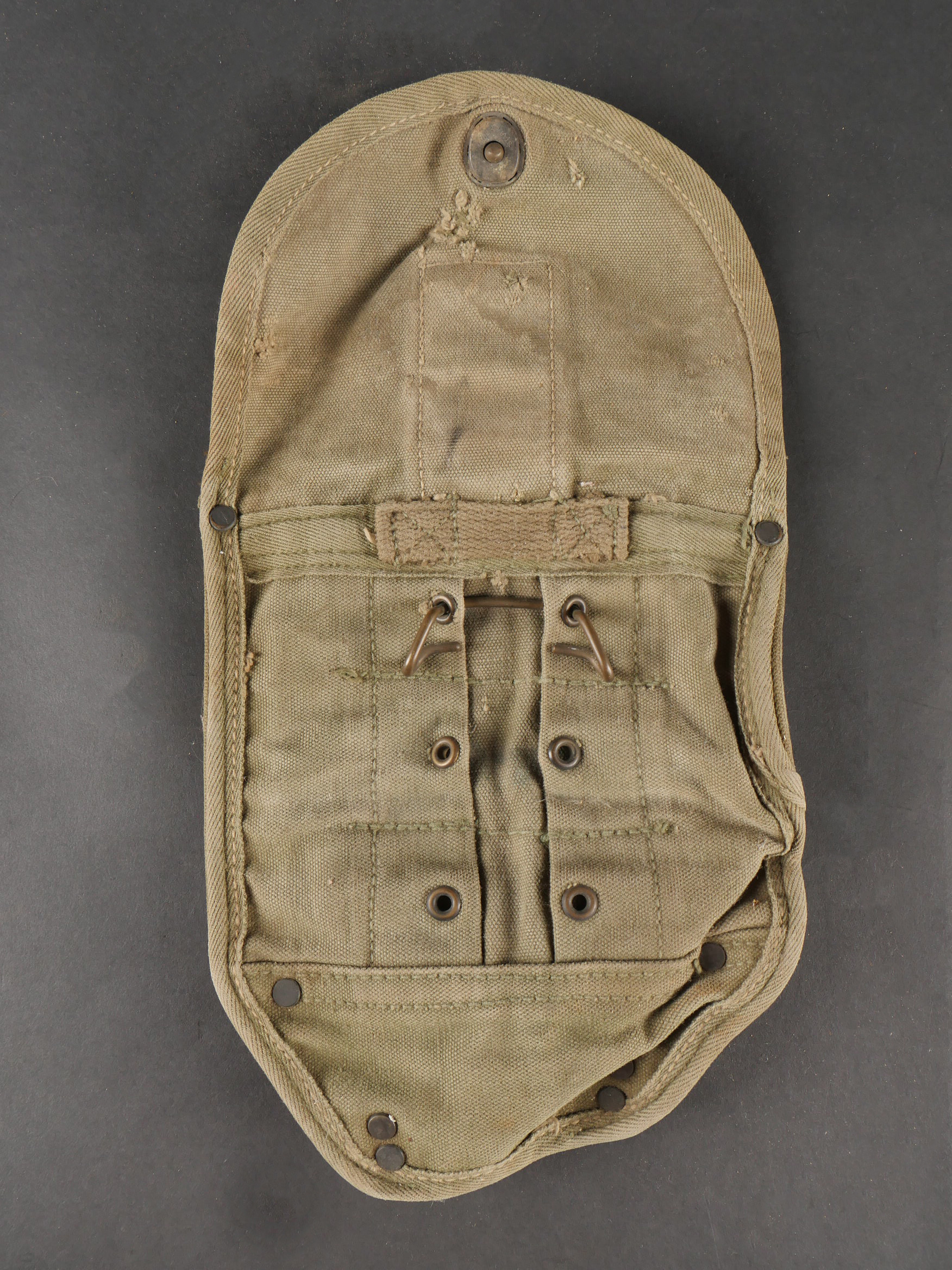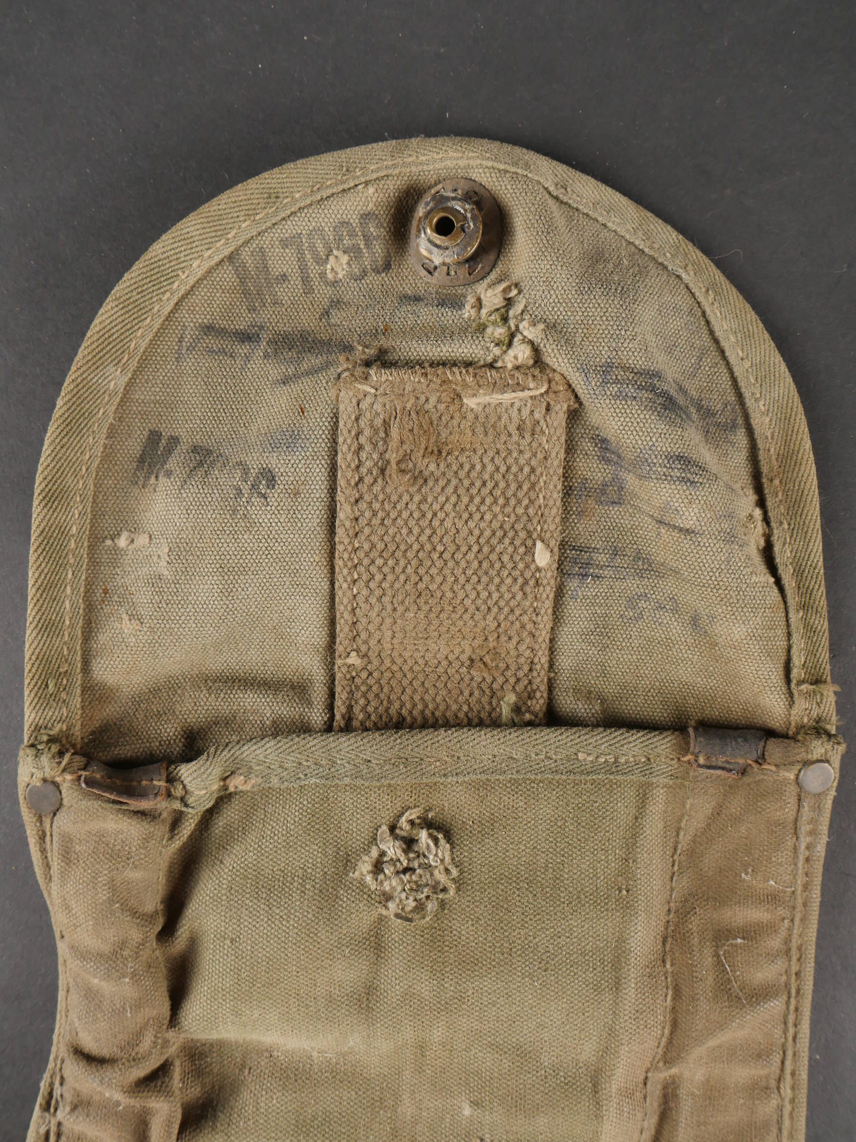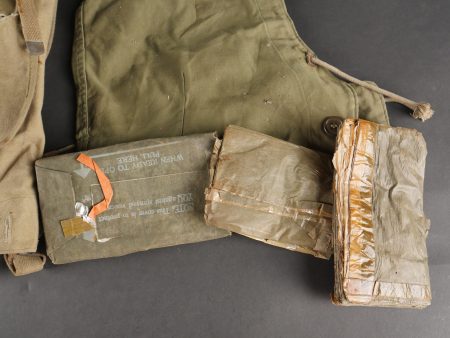 Détails de la vente >Lot d’équipements US. Comprenant une pioche réglementaire dans son étui OD7, manche absent. Un havresac M1928 en bon état général, sangles dorsales absentes. Deux capuches de vestes... en savoir plus