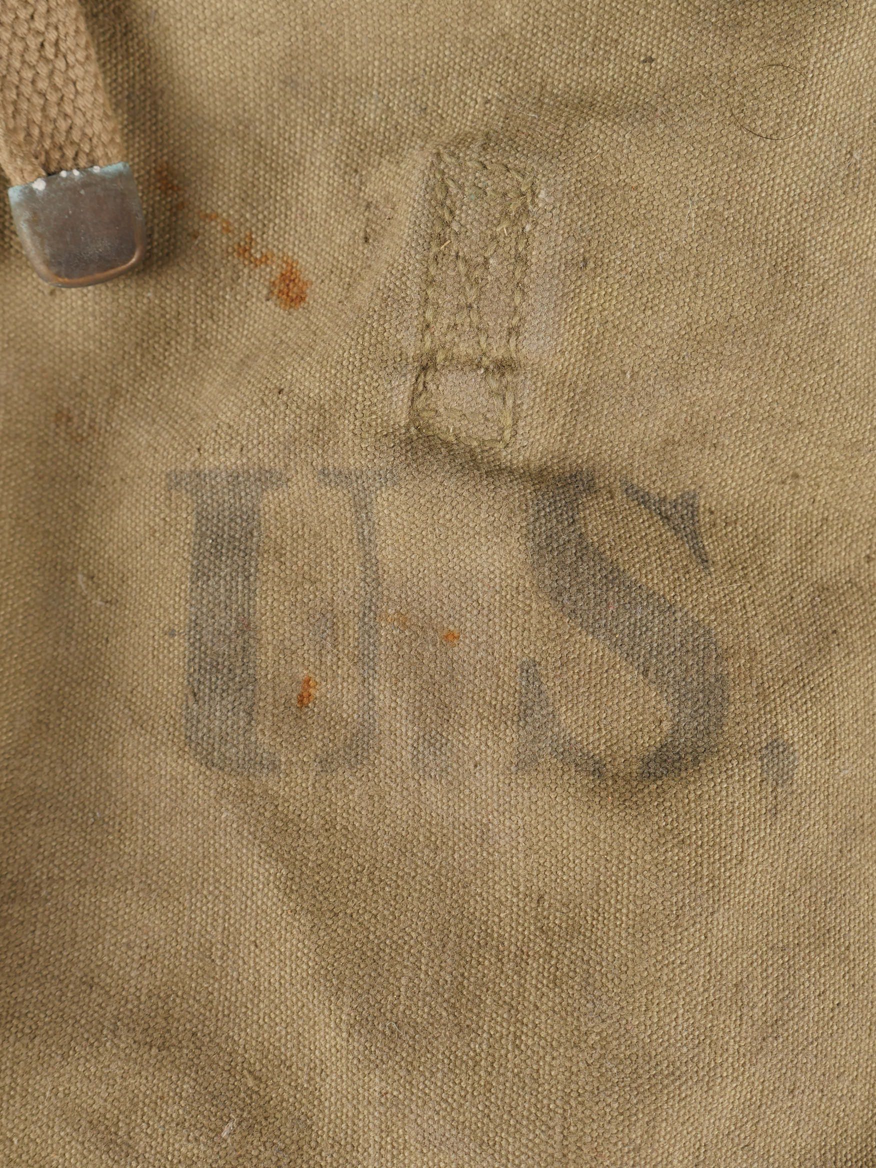 Lot d’équipements US. Comprenant une pioche réglementaire dans son étui OD7, manche absent. Un havresac M1928 en bon état général, sangles dorsales absentes. Deux capuches de vestes... en savoir plus
