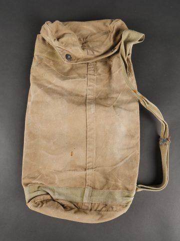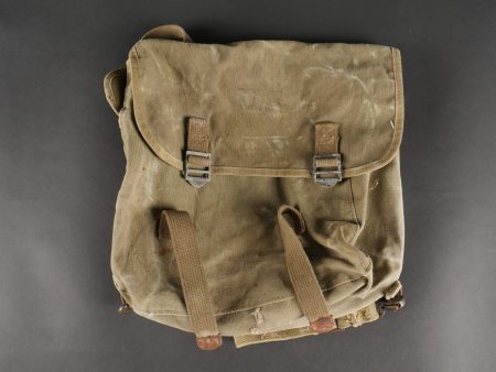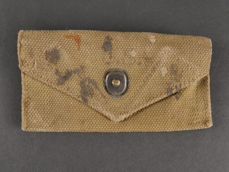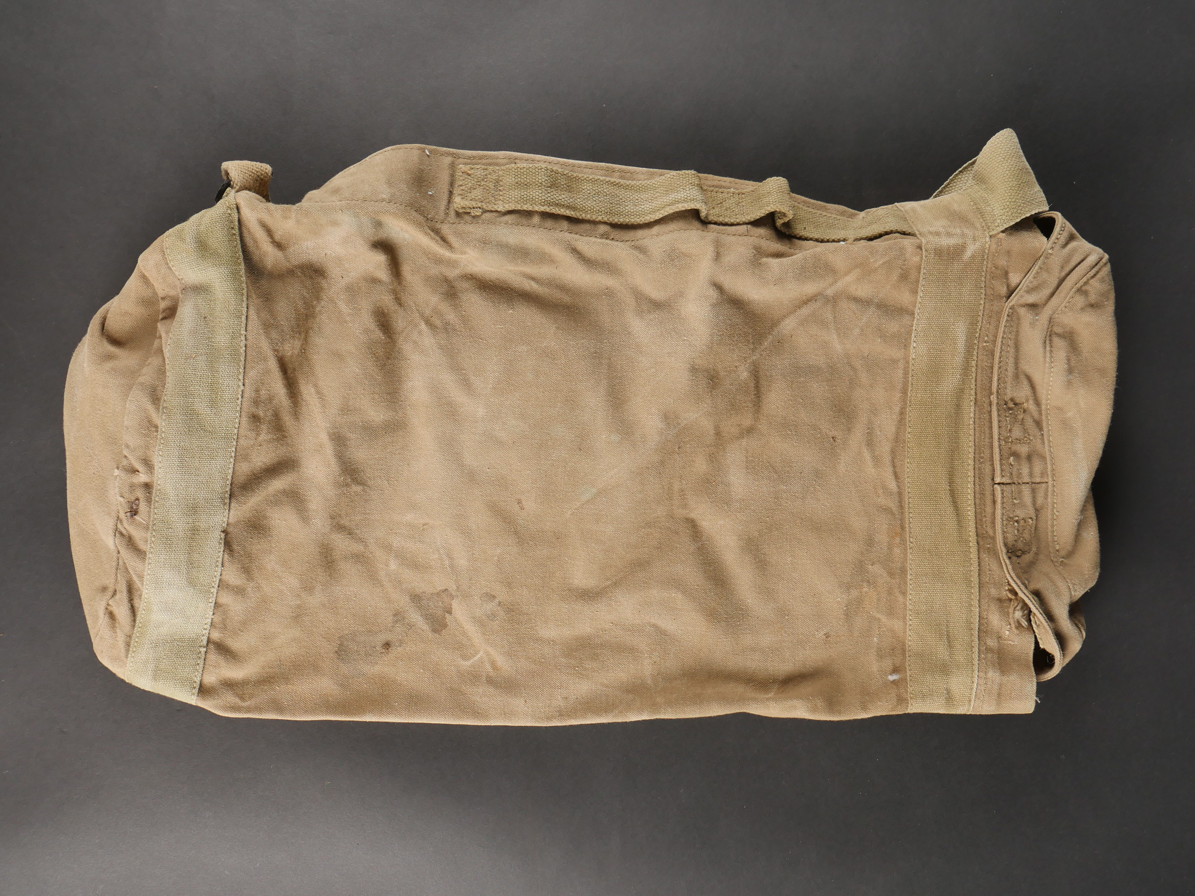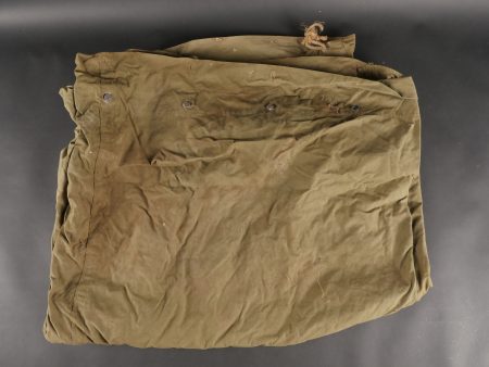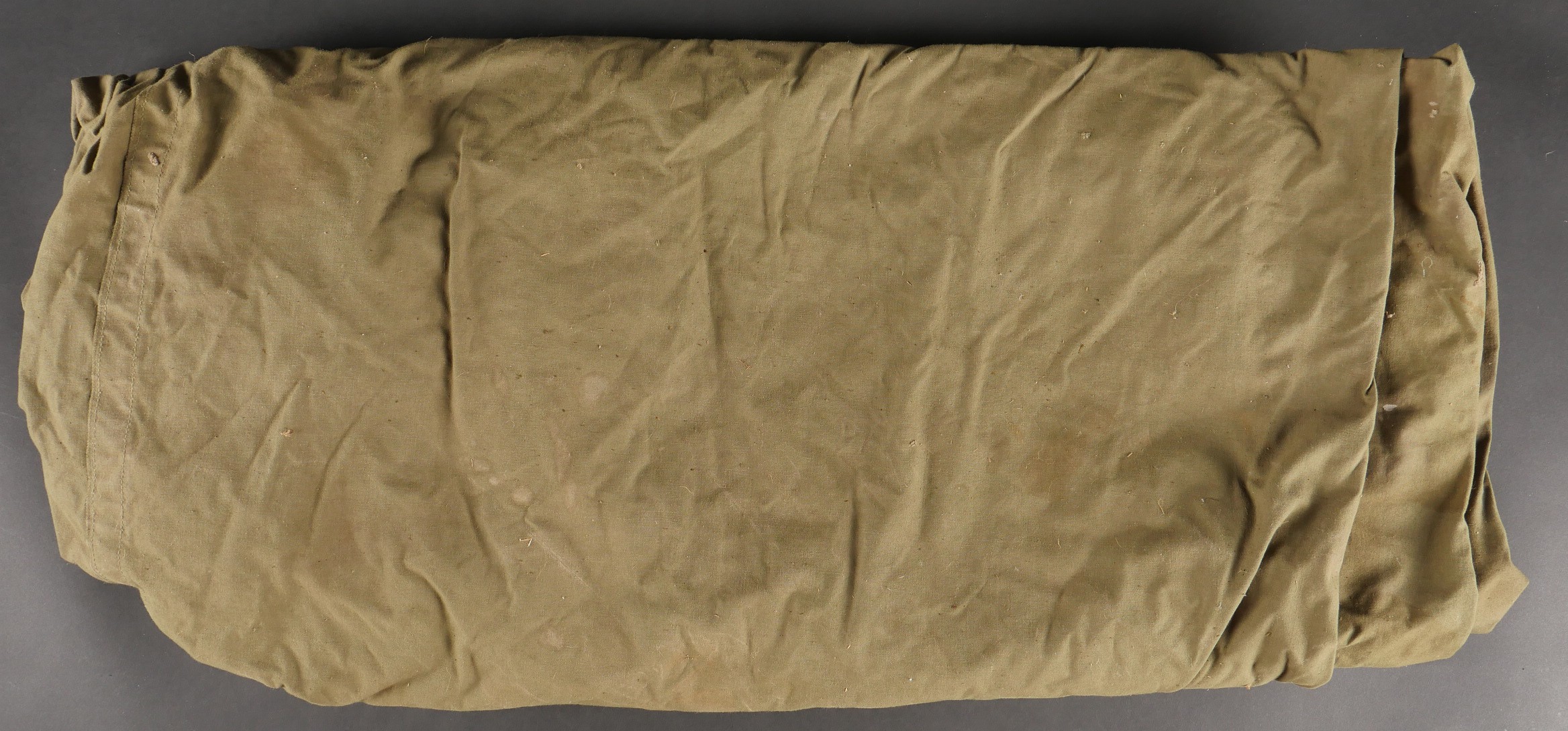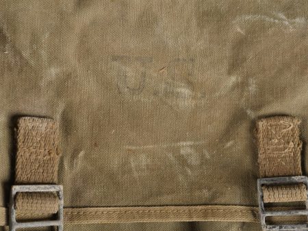 Détails de la vente >Lot d’équipements US provenance Flamierges. Musette US, toile de tente, sacoche de transport de roquettes et pochette à pansement