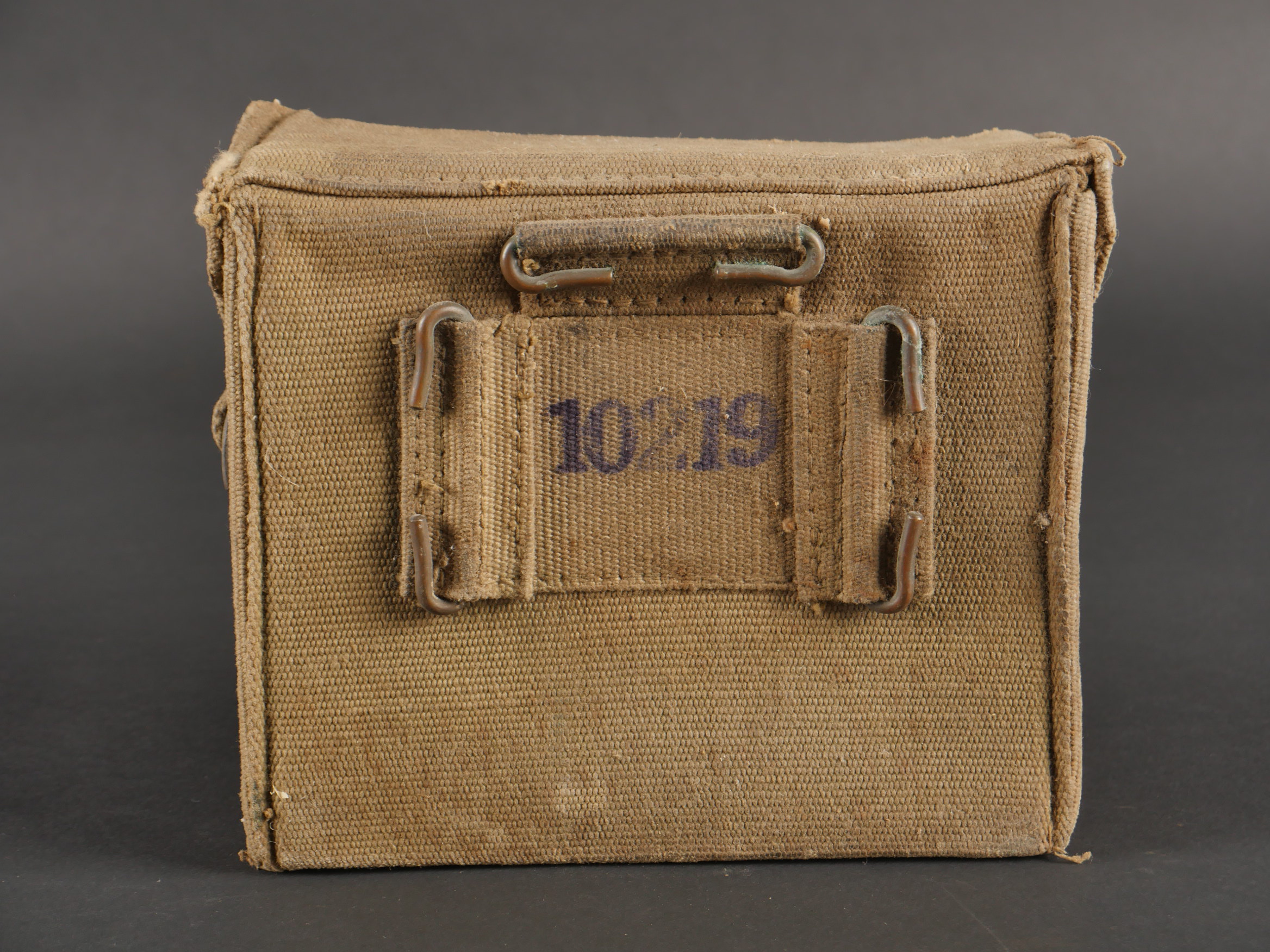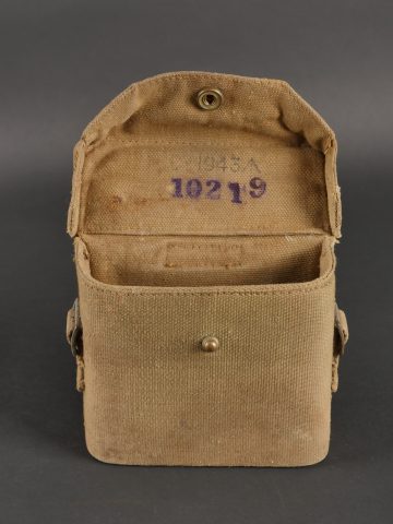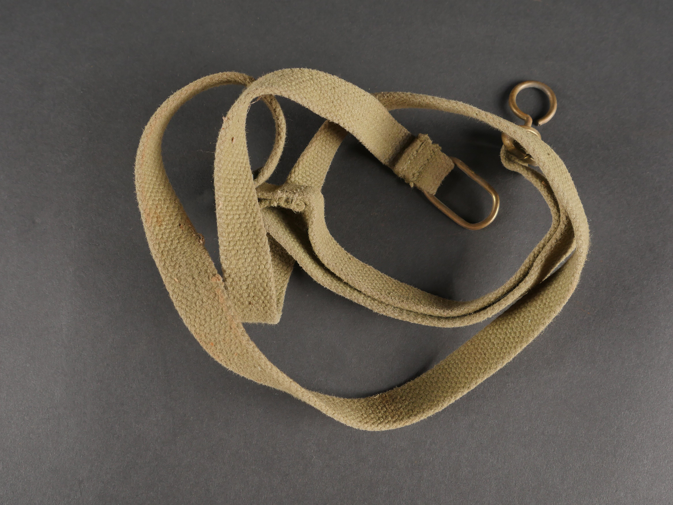 Détails de la vente >Lot équipement anglais WW2. Etui pour jumelles, en Web daté 1943. Sangle bretelle de Sten, en Web à bouclerie laiton