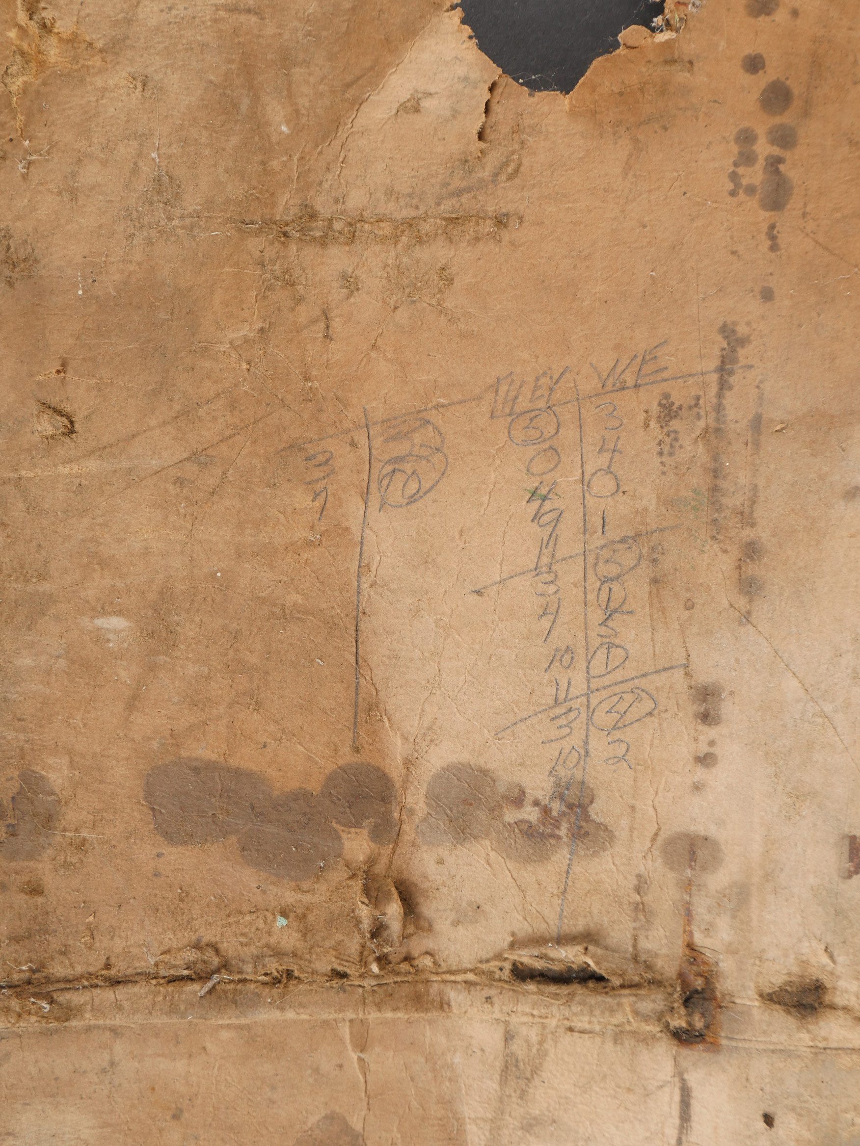 Lot US provenance Maison du Sniper carrefour de Foy. Retrouvé dans la célèbre maison du Sniper, un morceau de carton de ration US sur lequel sont inscrits les scores d’un jeu... en savoir plus
