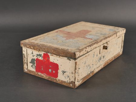 Détails de la vente >Luftschutzverbandkasten terrain. Intéressante caisse de premiers soins de la Luftschutz, utilisée sur le terrain cette dernière a été repeinte en blanc avec ajout de trois croix rouges peinte... en savoir plus