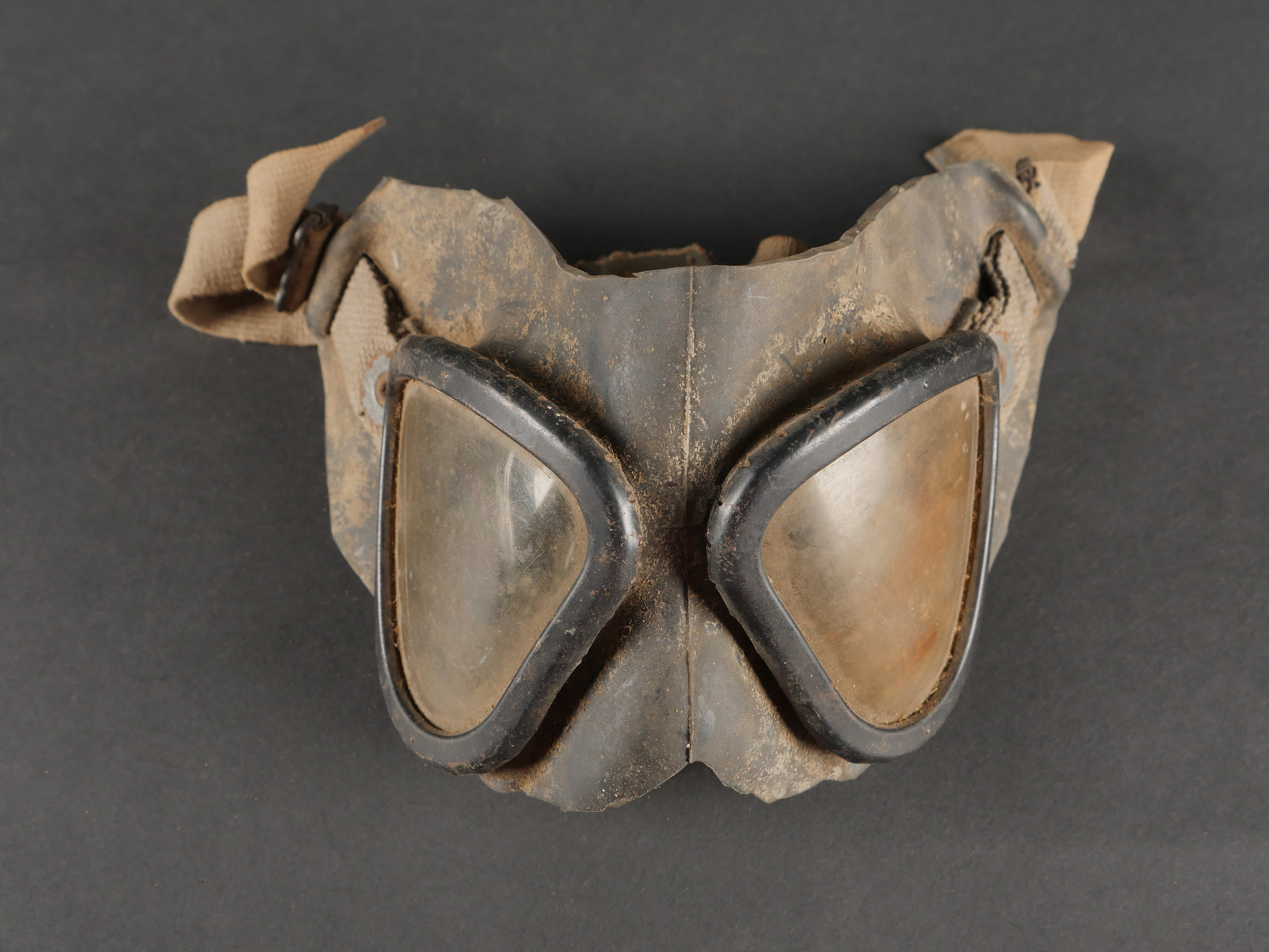 Détails de la vente >Rares lunettes de protection, masque anti gaz assaut. Rare lunettes réalisées dans un masque anti-gaz d’assaut M5 découpé, probablement utilisées par une unité parachutiste. Il existe... en savoir plus