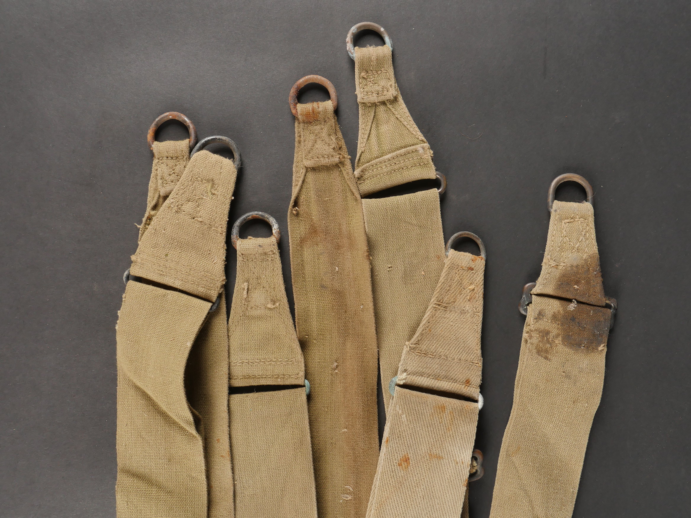 Sangles de musettes M36. Divers fabricants, dates et états. Divers états de conservation.