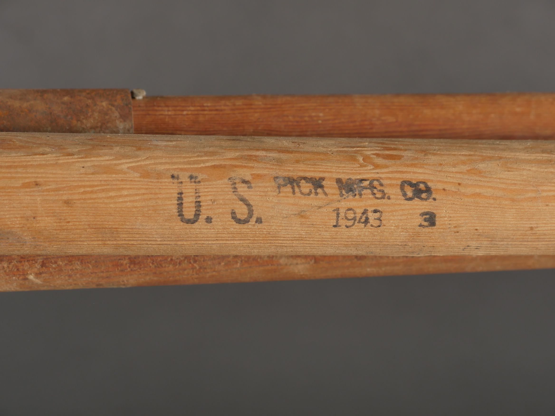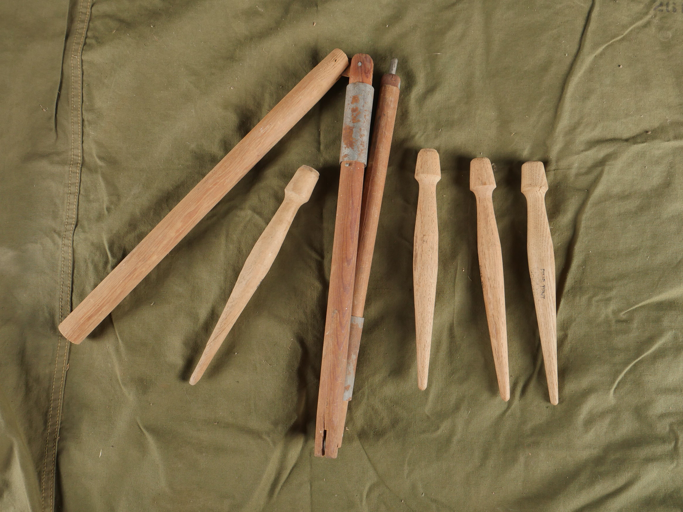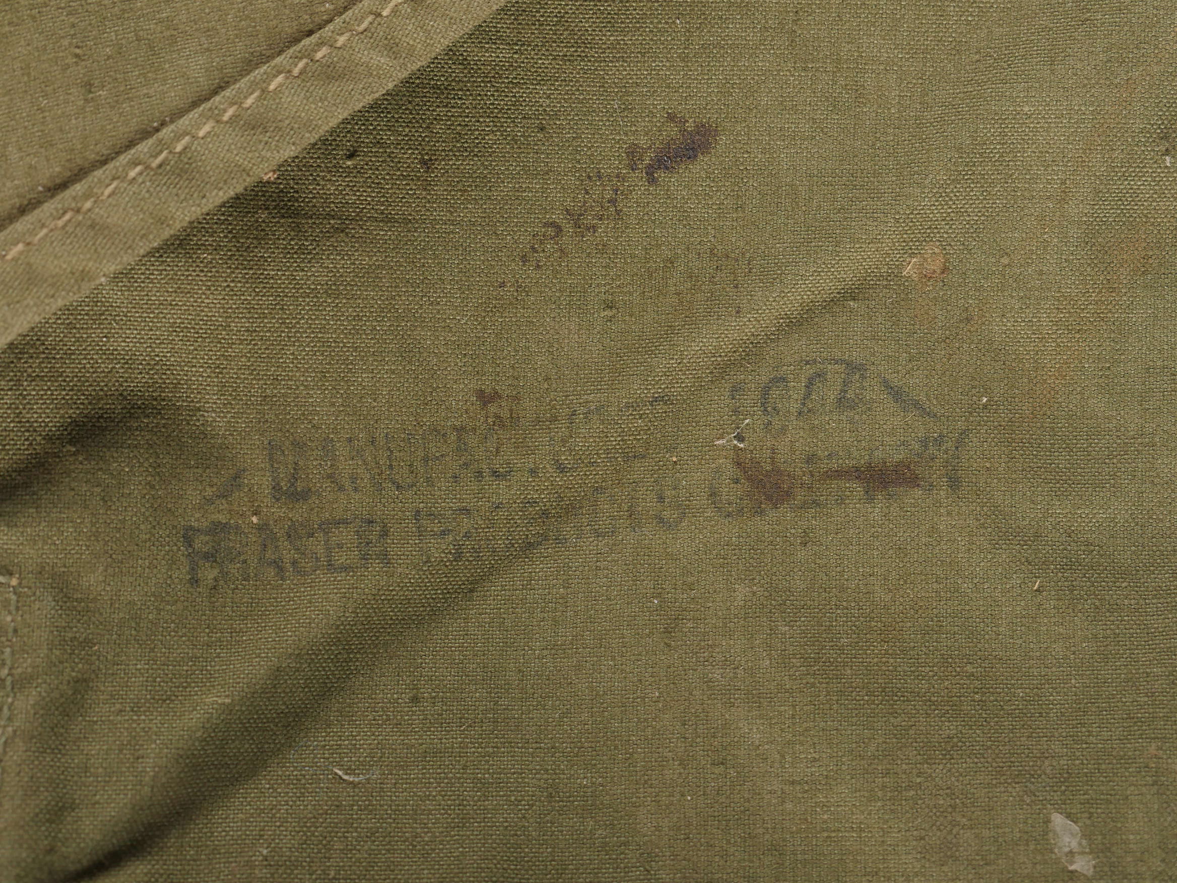 Détails de la vente >Toile de tente US. Belle toile de tente OD7 avec son mat daté 1943 et ses piquets datés 1942.