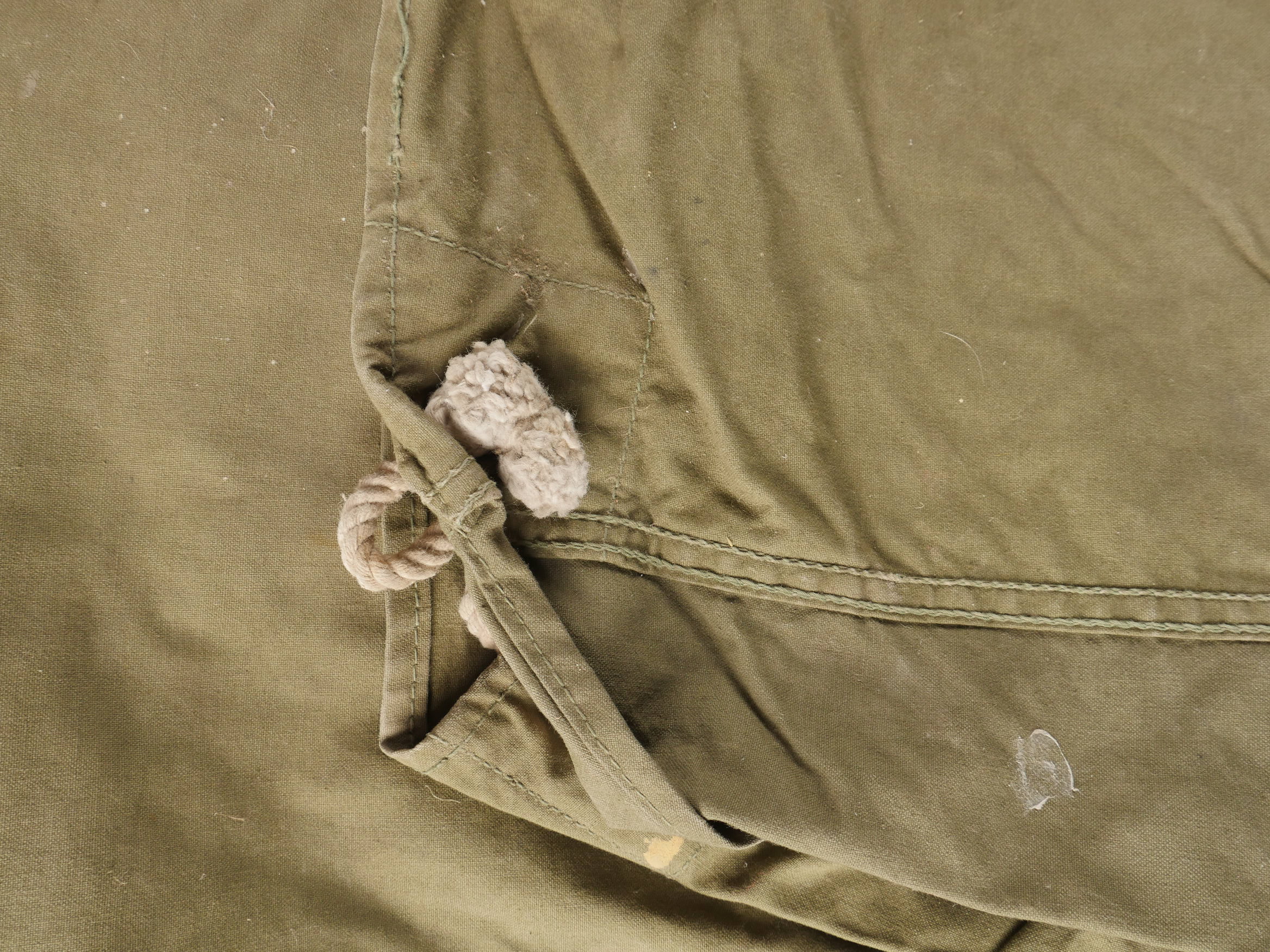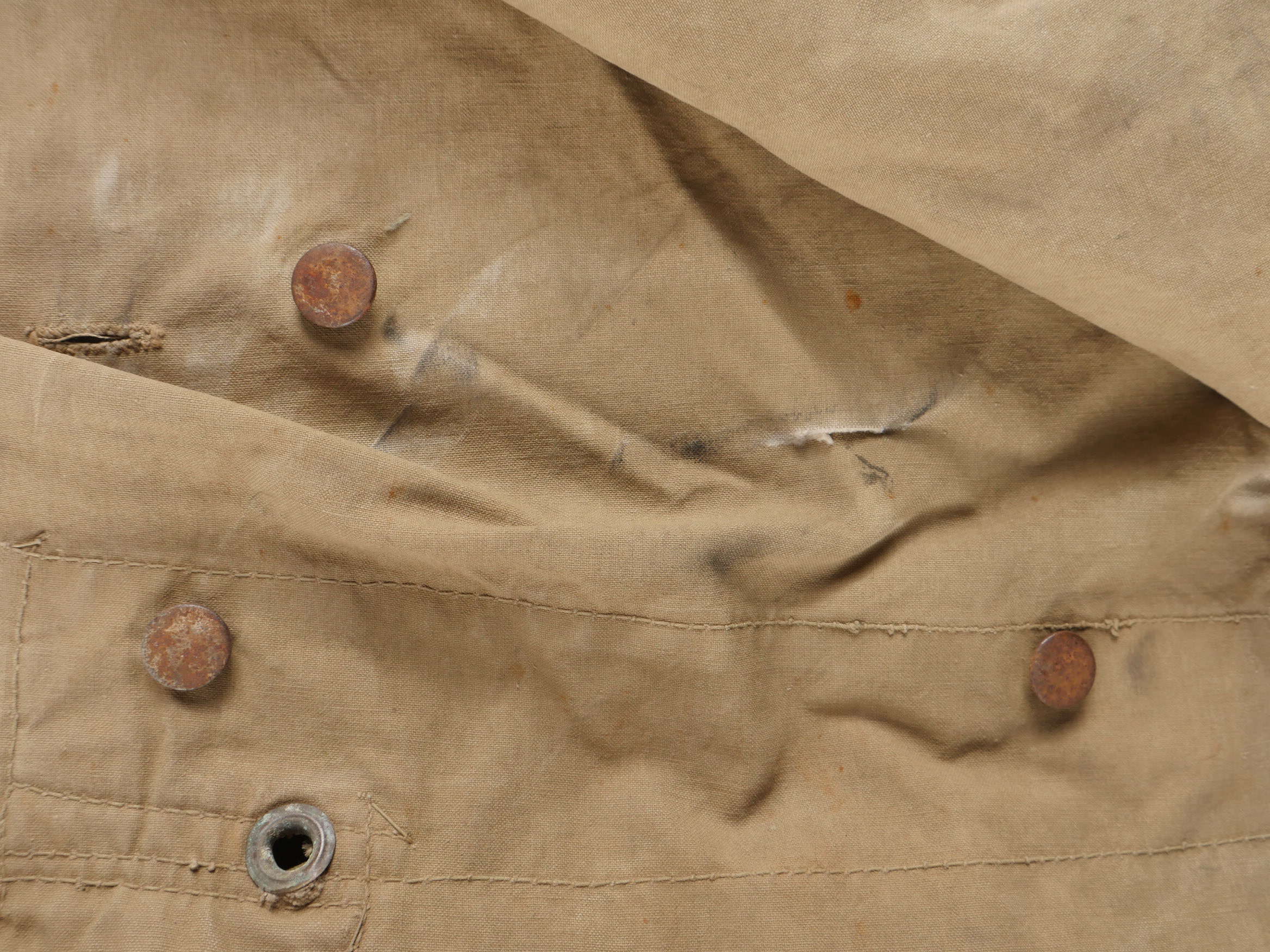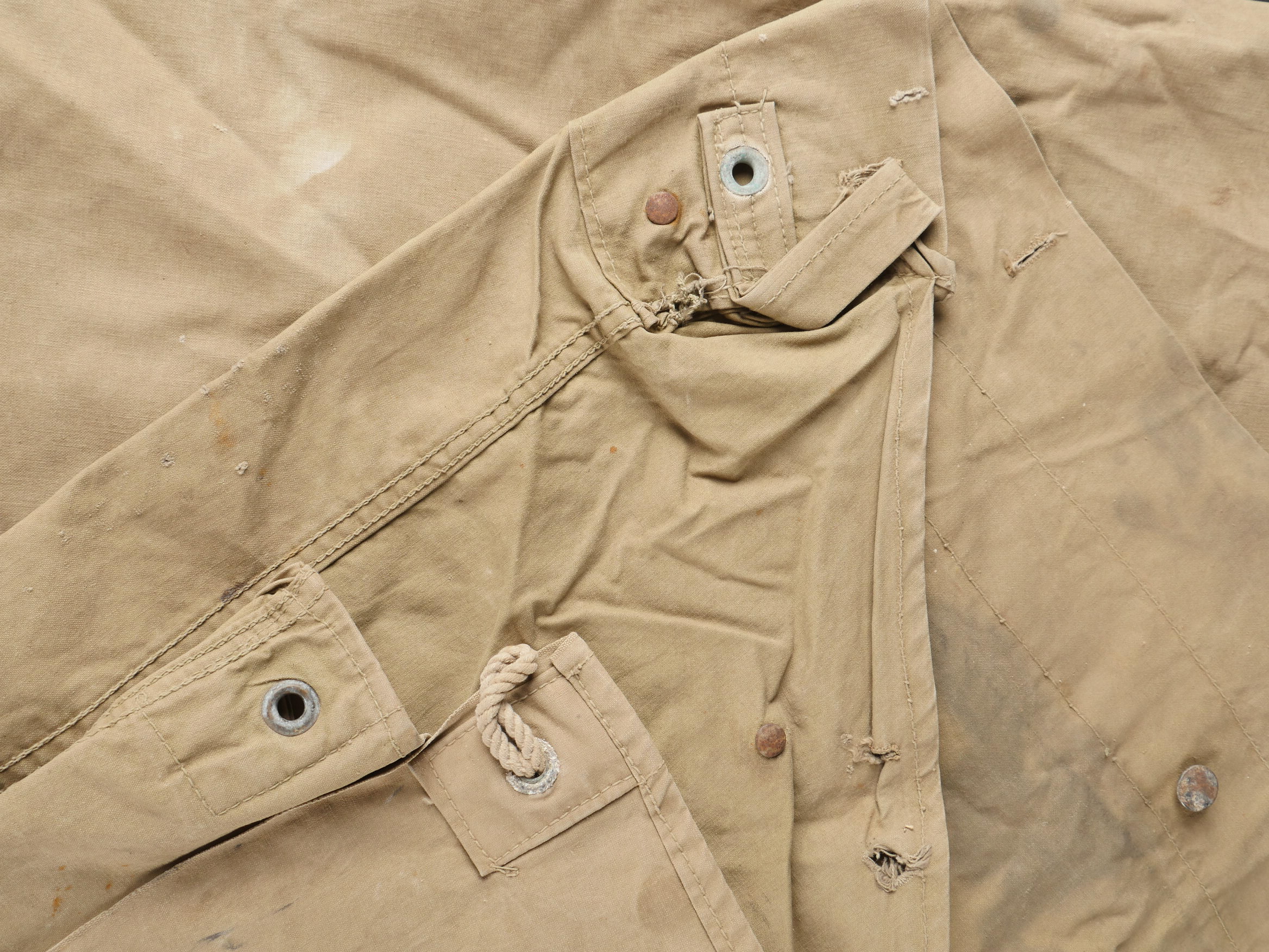 Détails de la vente >Toiles de tente US. Deux toiles de tente US, une OD3 et une OD7. Trous, accrocs et manques. Laundry Number F3104 présent sur l’une. Divers états de conservation.