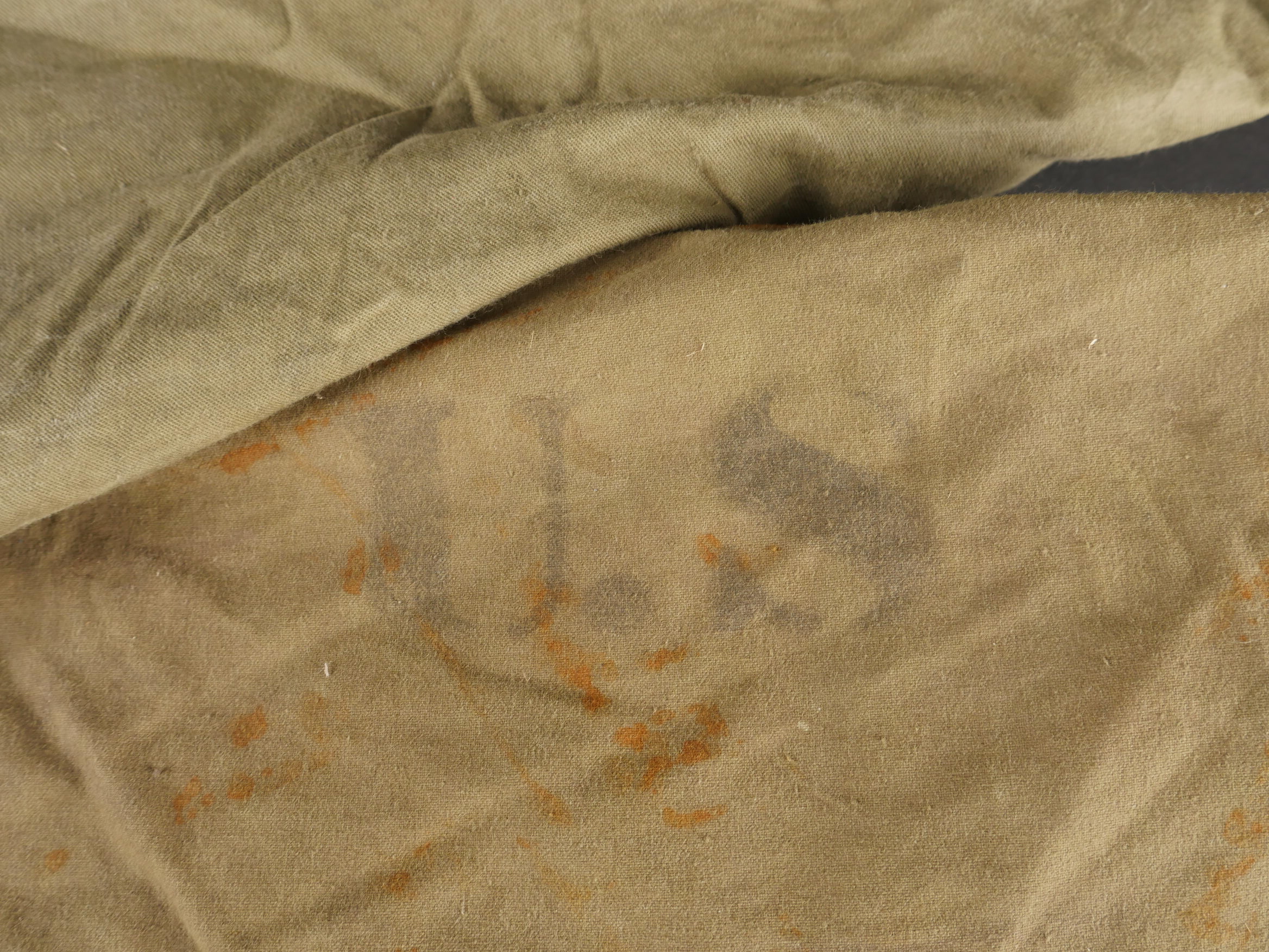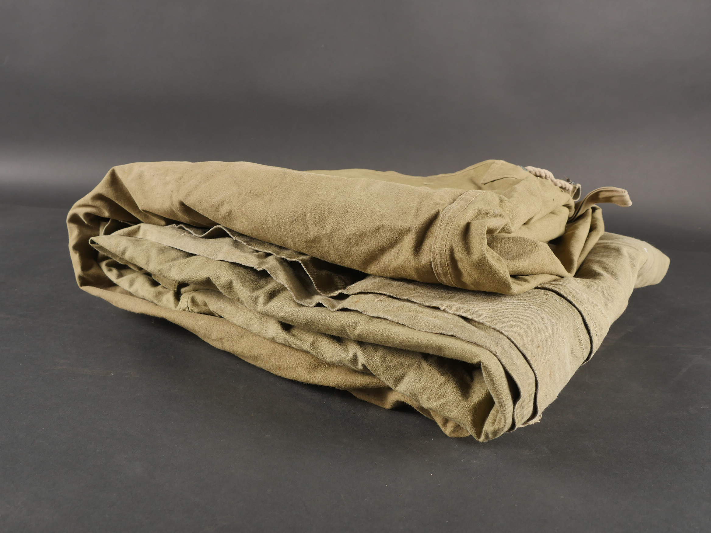 Toiles de tente US. Toiles de tente US. Deux toiles de tente US OD3. Trous, accrocs et manques. Laundry Number F3104 présent sur l’une. Divers états de conservation. Divers états de conservation.