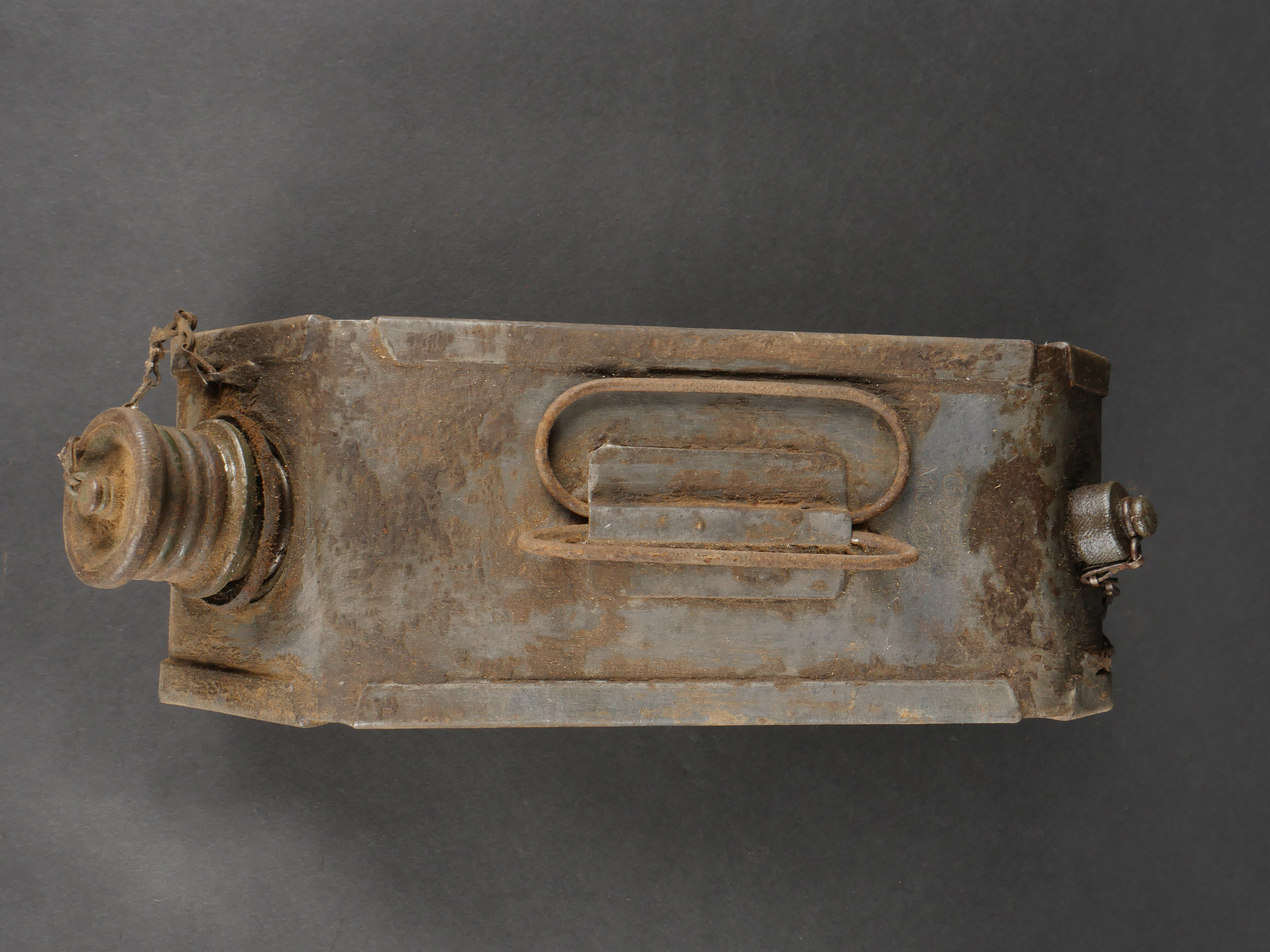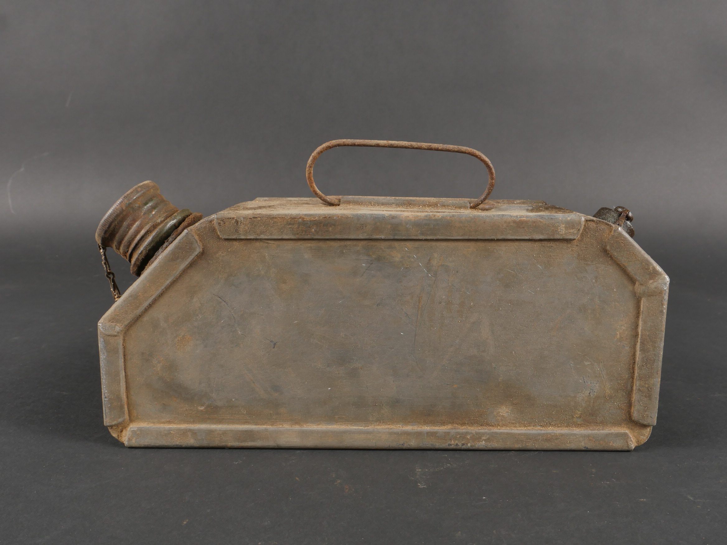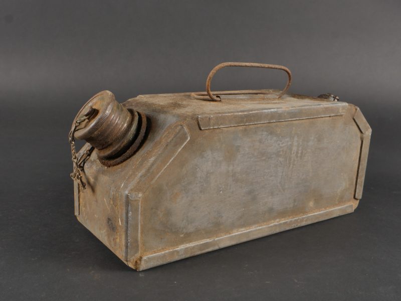 Détails de la vente >Bidon de glycérine pour arme allemande. Pour MG, FLAK ou PAK, bien marqué sur le dessus, avec ses bouchons