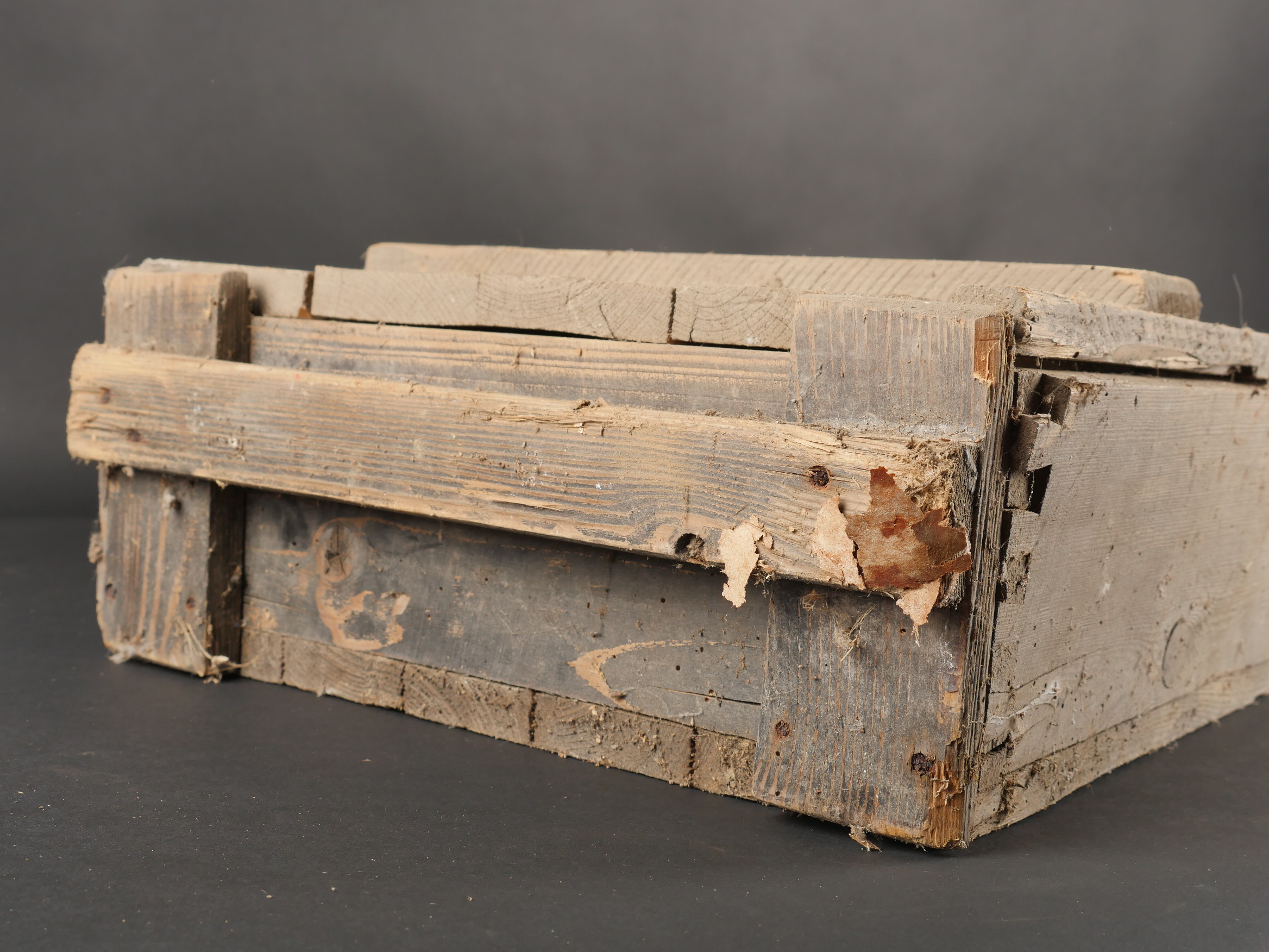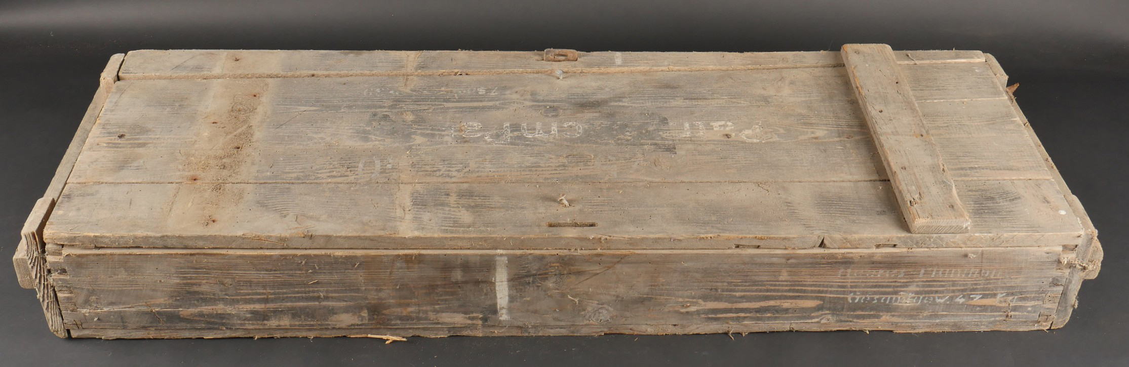 Détails de la vente >Allemagne ww2 Caisse pour obus de 7,5 PAK. Caisse en bois, couvercle fendu, quelques manques