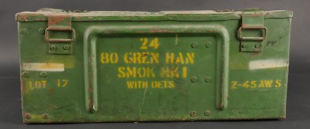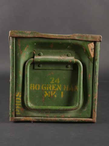 Anglais ww2 caisse pour grenades et fort lot de web. Caisse en métal datée 1942 pour grenades fumigènes, contenant un lot important de Web anglais, peut-être un peu d’ABL. On y trouve... en savoir plus