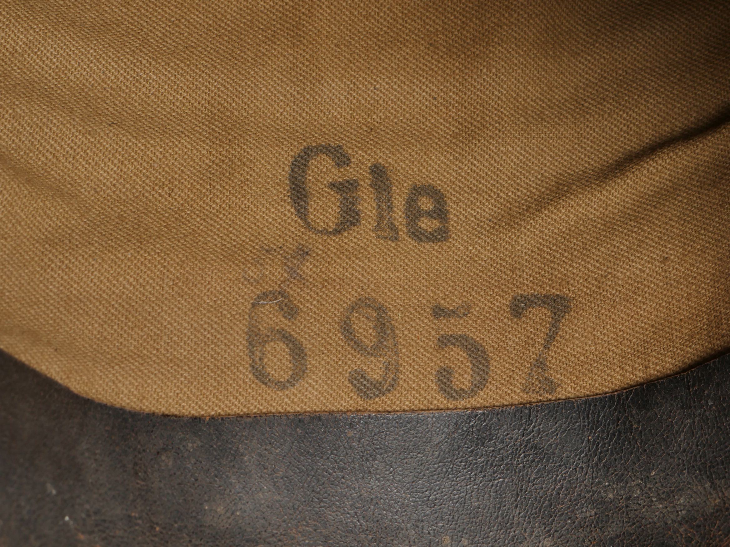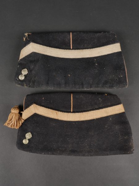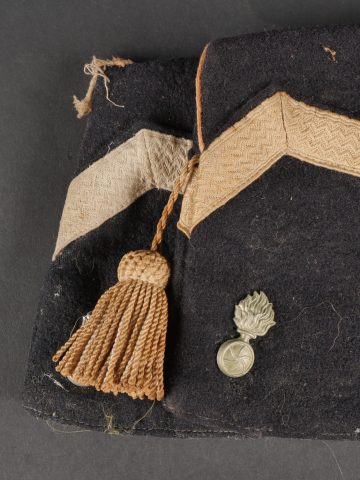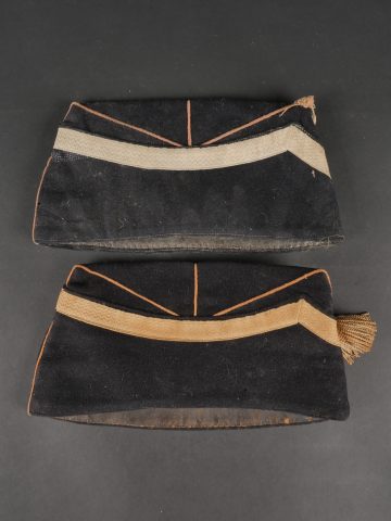 Détails de la vente >Belgique Gendarmerie lot de 2 bonnets de police. 2 bonnets de police en drap avec grenade métallique. Un marqué Gie et matricule, avec floche troupe. Un autre avec matricule, sans floche