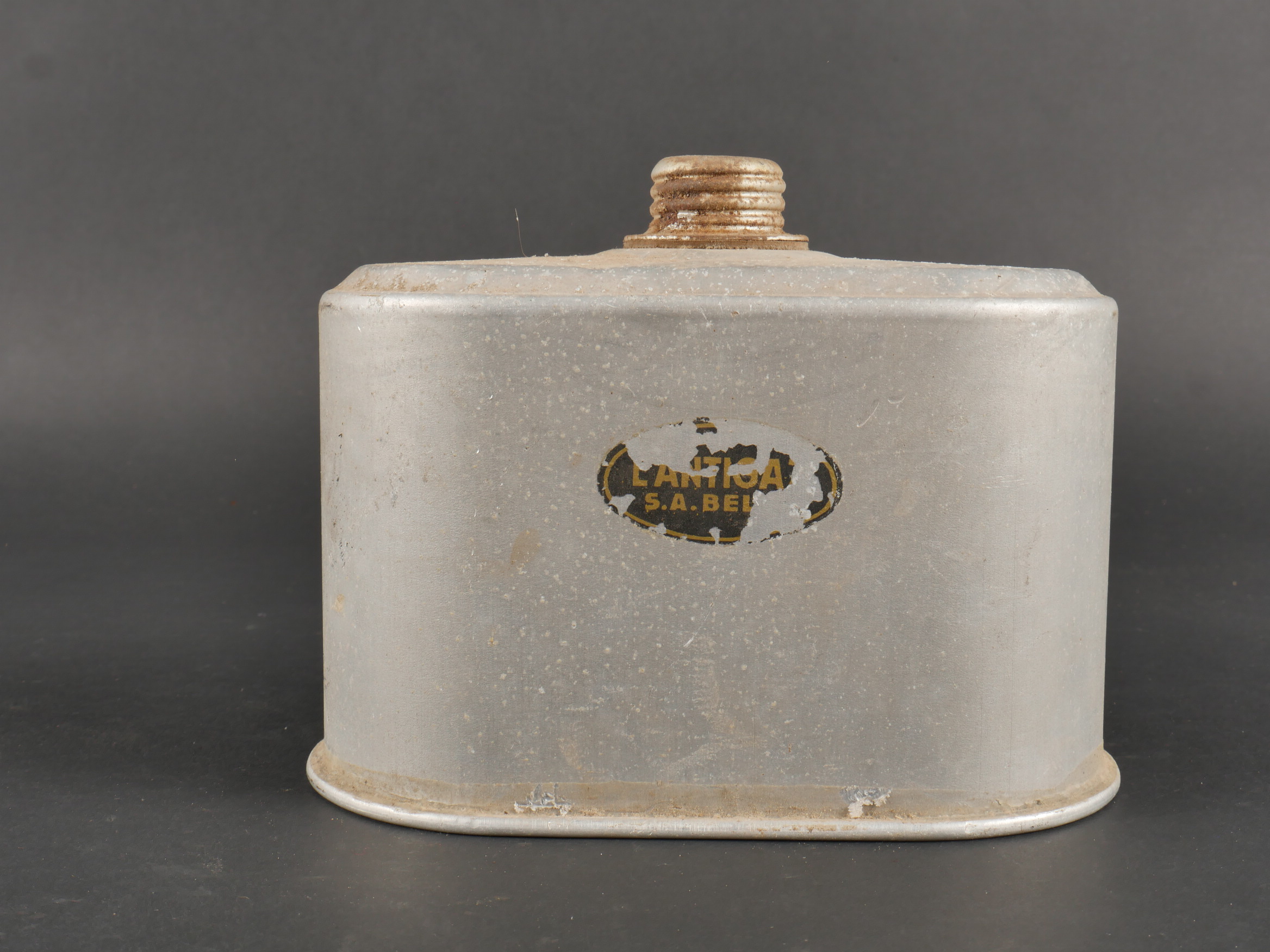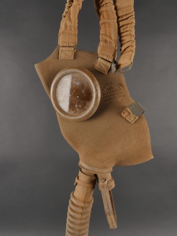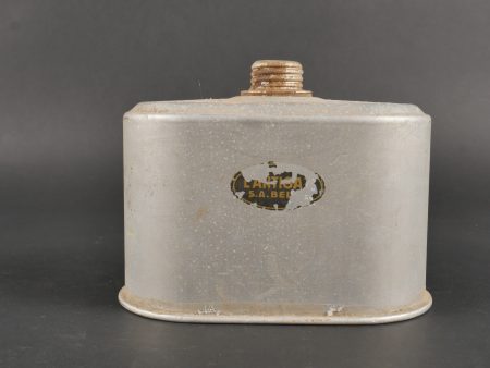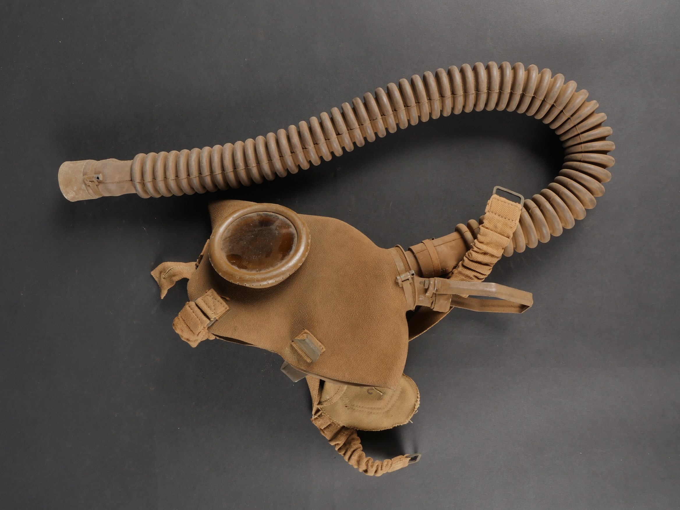 Belgique WW2 casque et équipement. Casque Adrian Mle 1926 peint en noir, le lion et le cimier peints en blanc, avec coiffe et jugulaire. Un masque anti-gaz dans sa sacoche toile, une cartouche filtrante aluminium datée 1937 et une gamelle grand modèle, anse postérieure