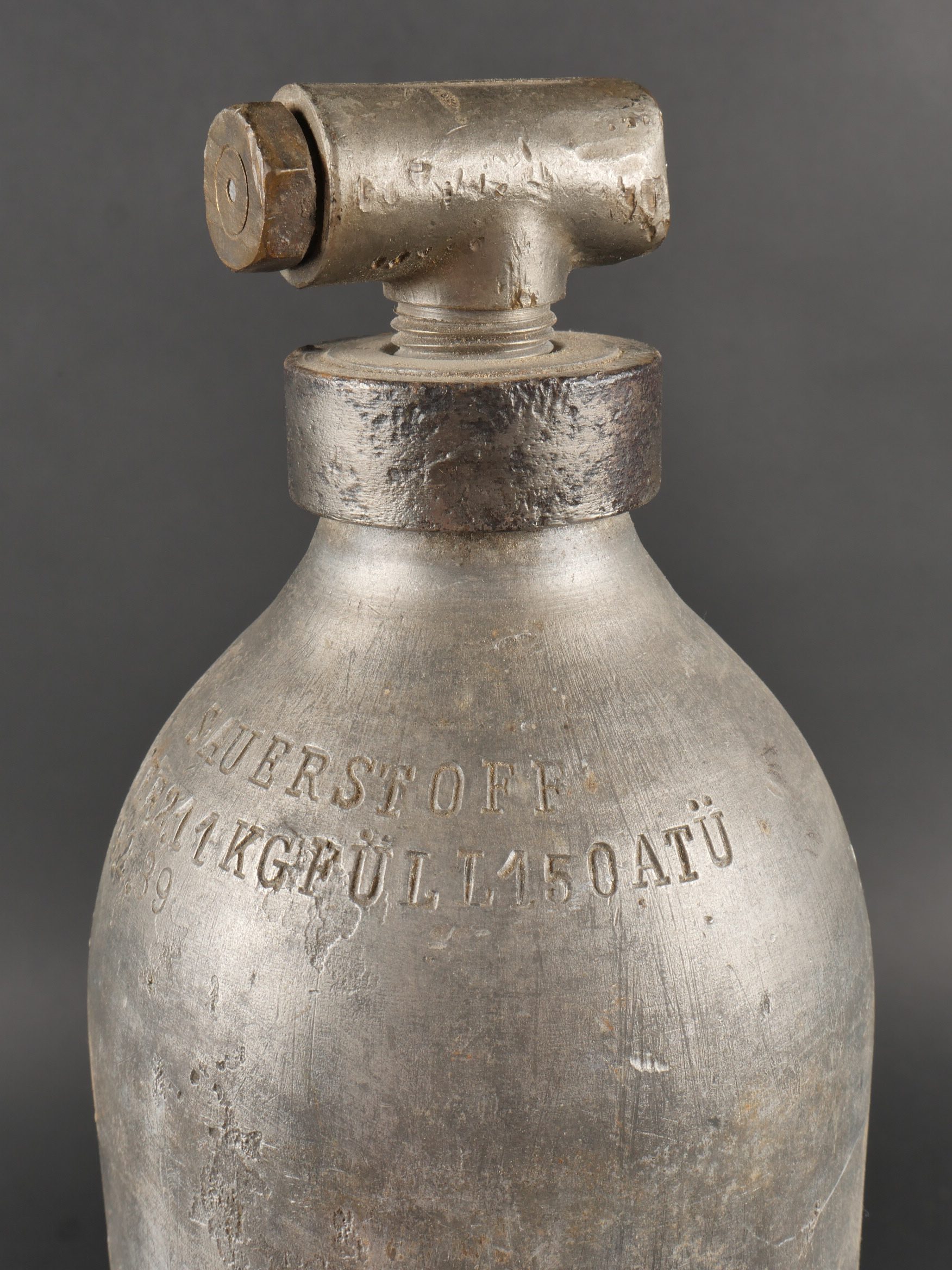 Détails de la vente >Bouteille d’oxygène de la Luftwaffe. Bien marquée et datée 1938 et 1939