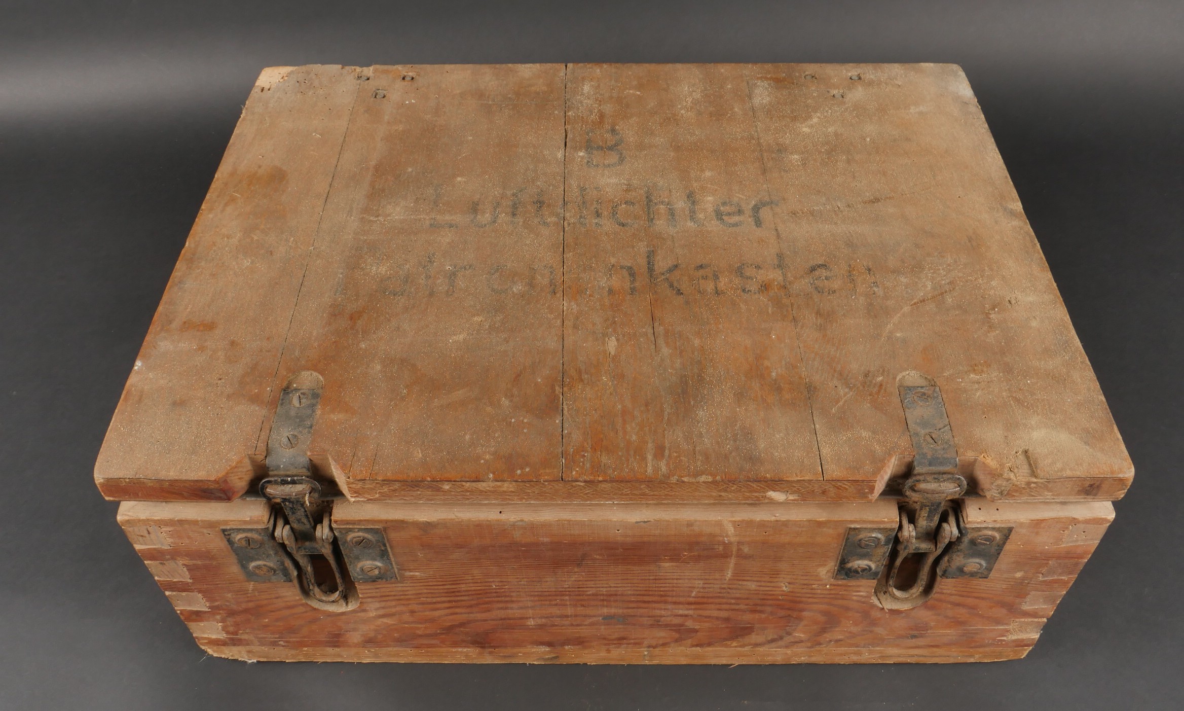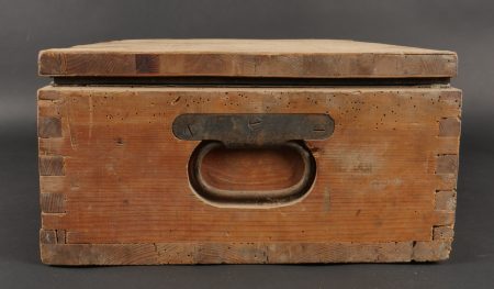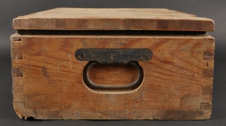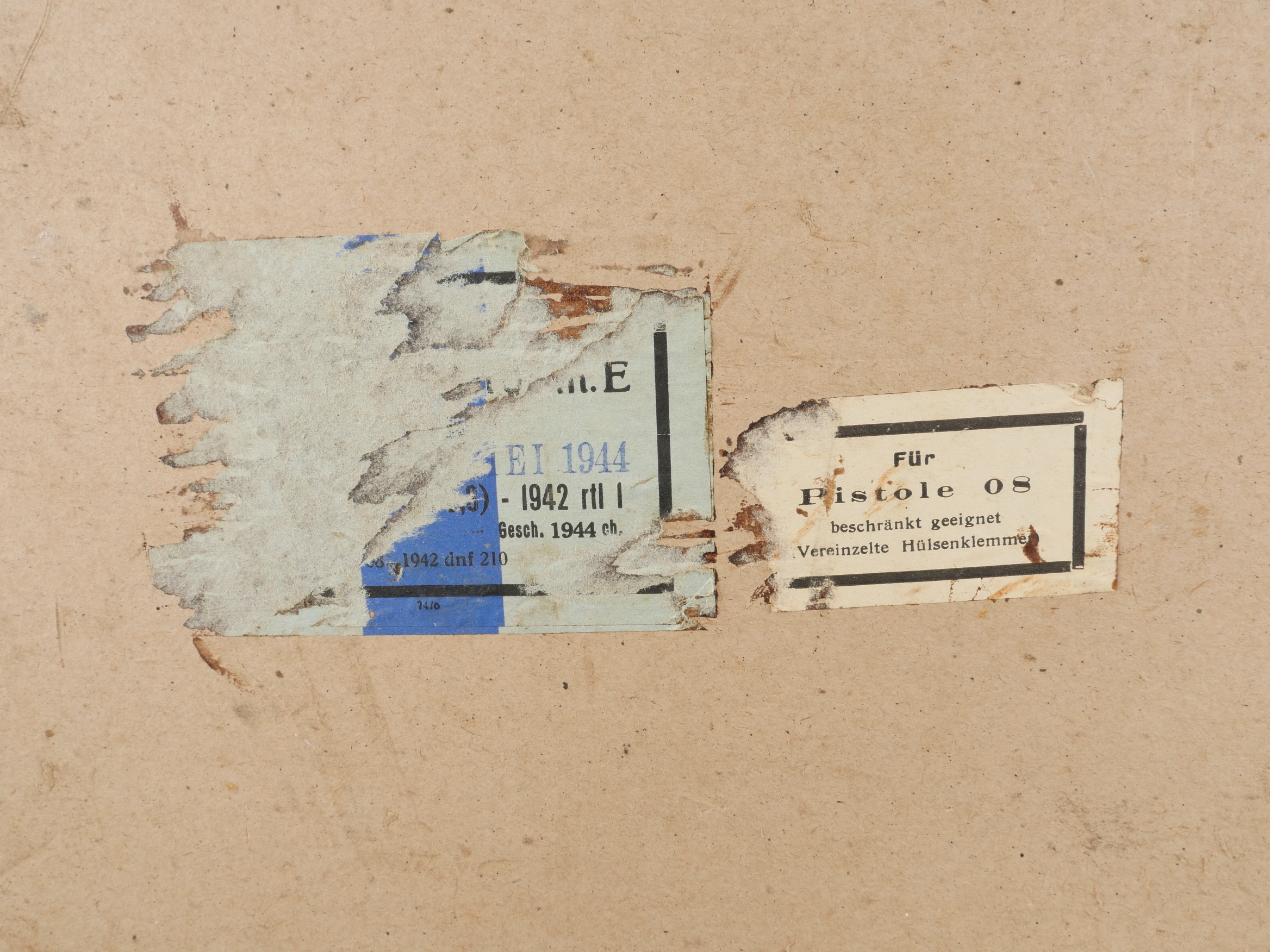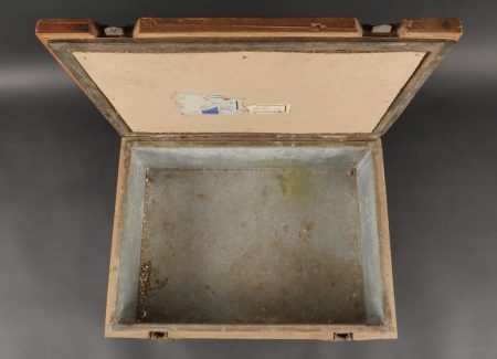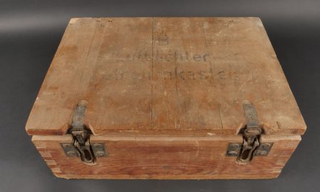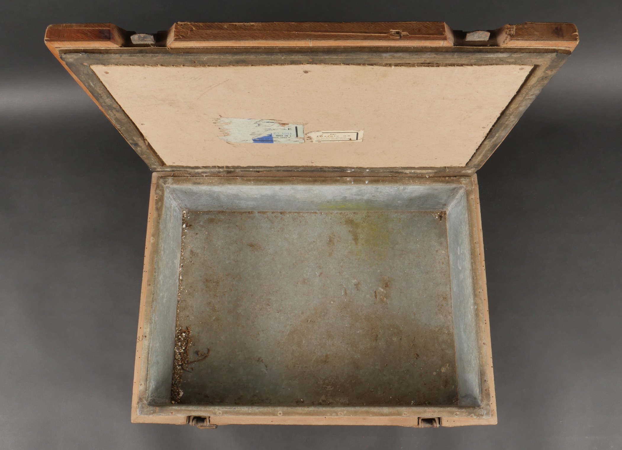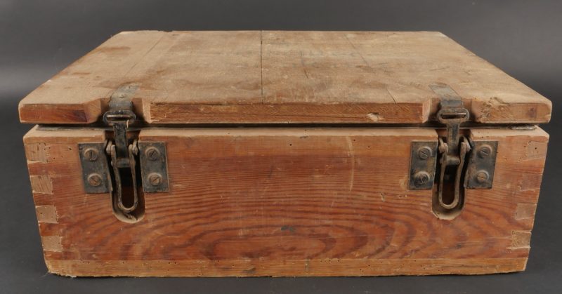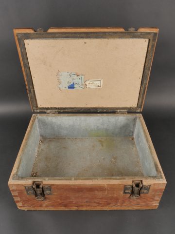 Détails de la vente >Caisse allemande munitions de Luger P08. Patronenkasten avec son bac interne, étiquette partielle