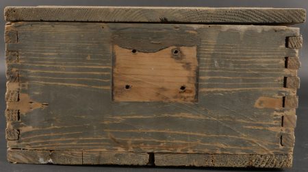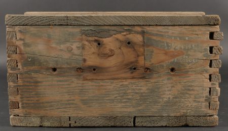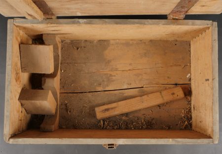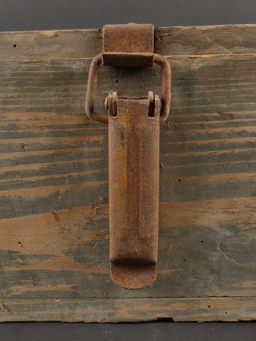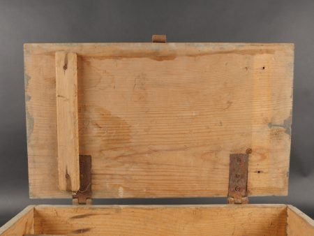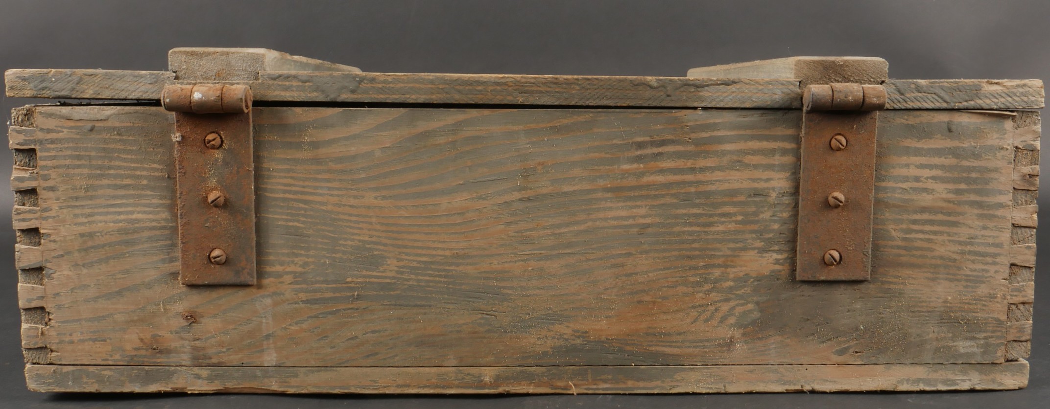 Détails de la vente >Caisse allemande pour douilles 10cmK14. Caisse en peinture Feldgrau, cales à l’intérieur, manque les poignées