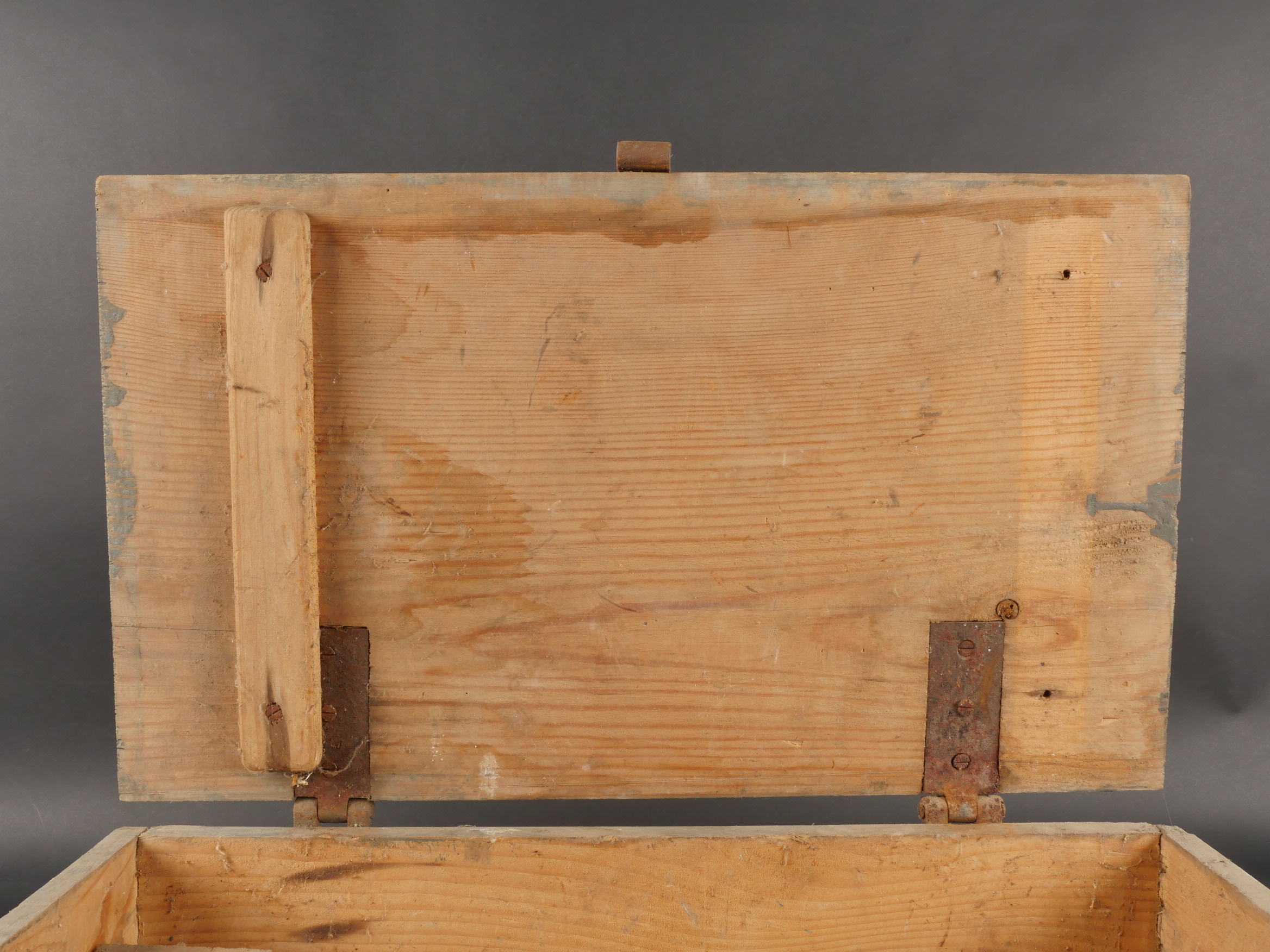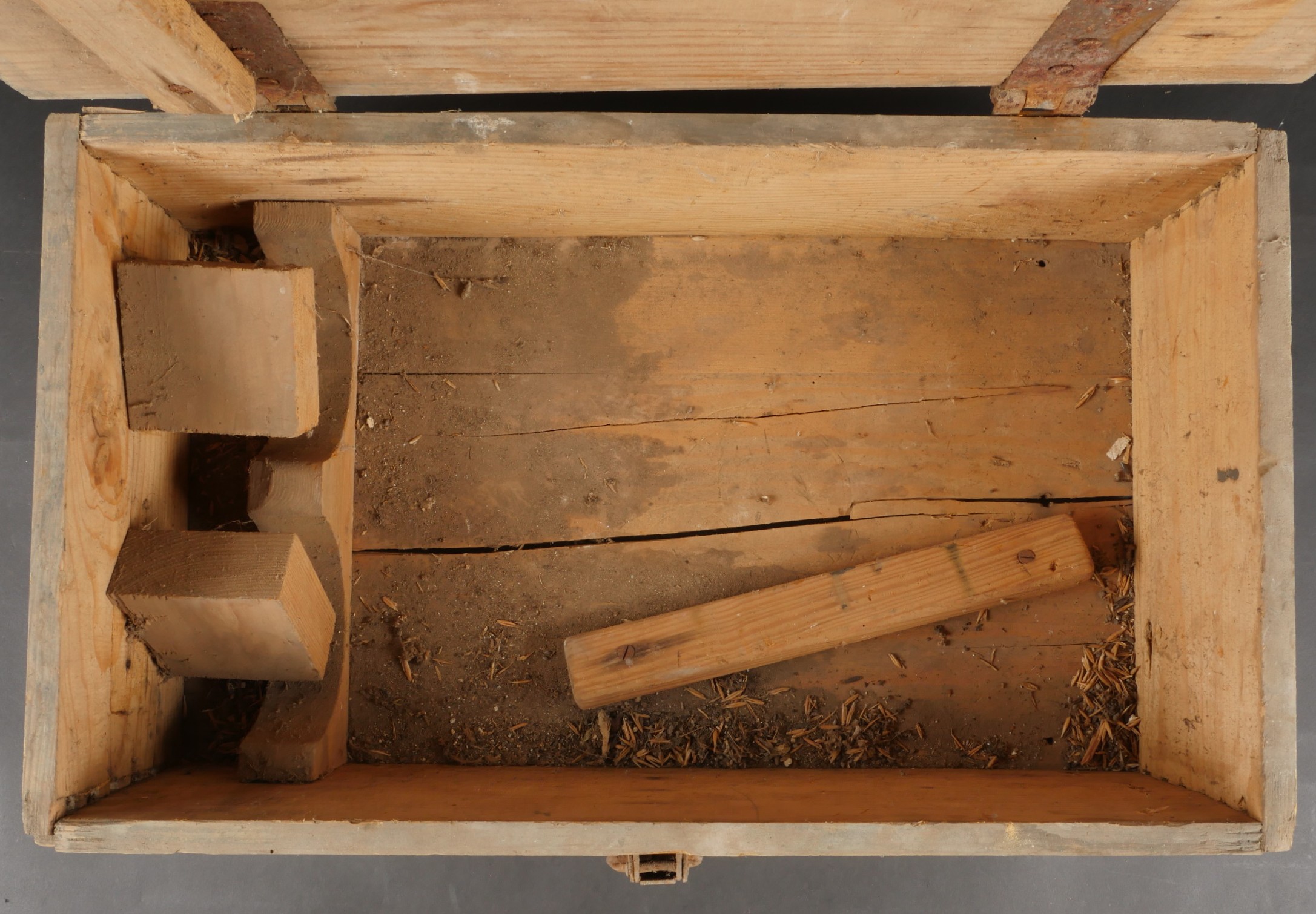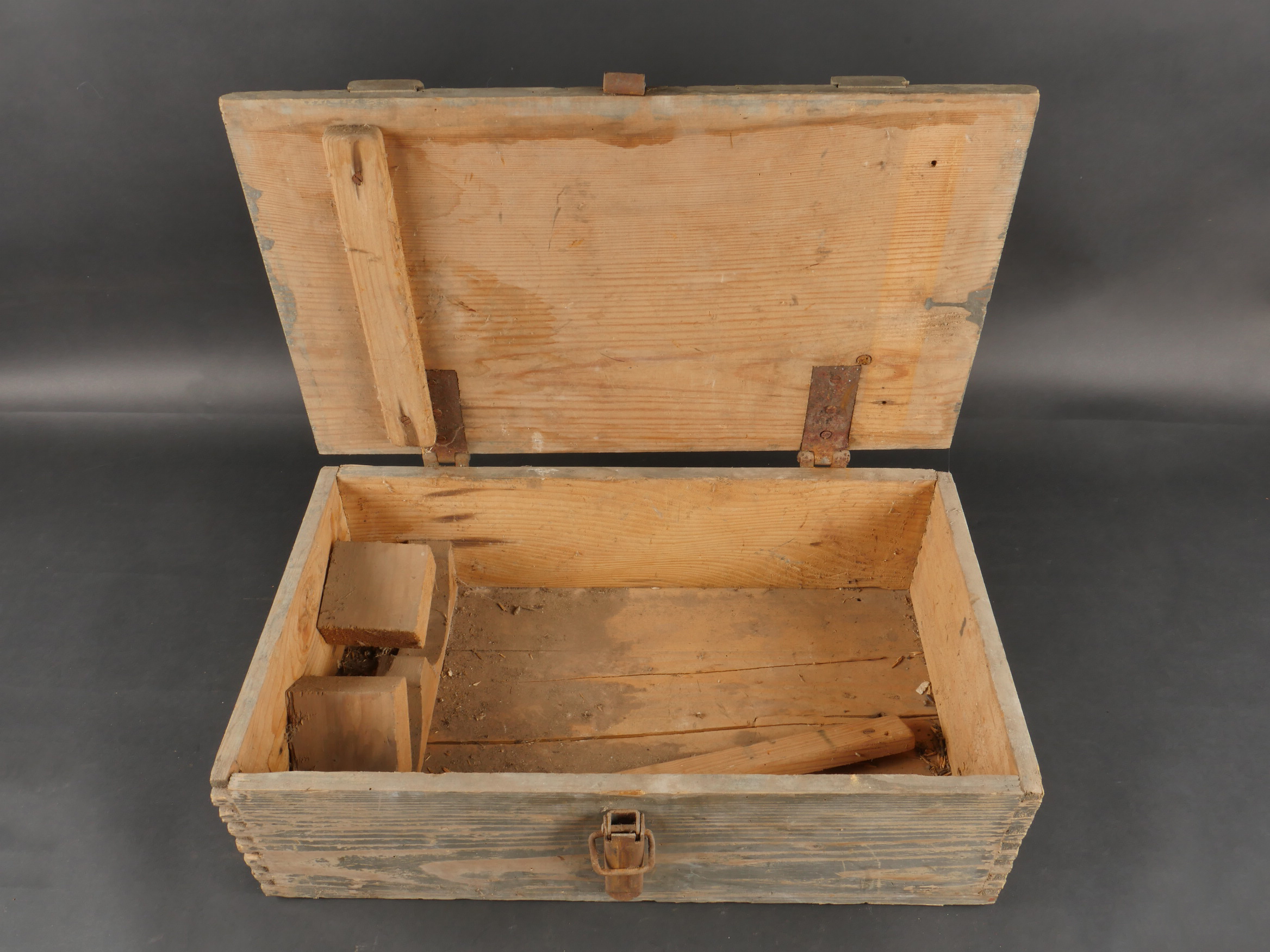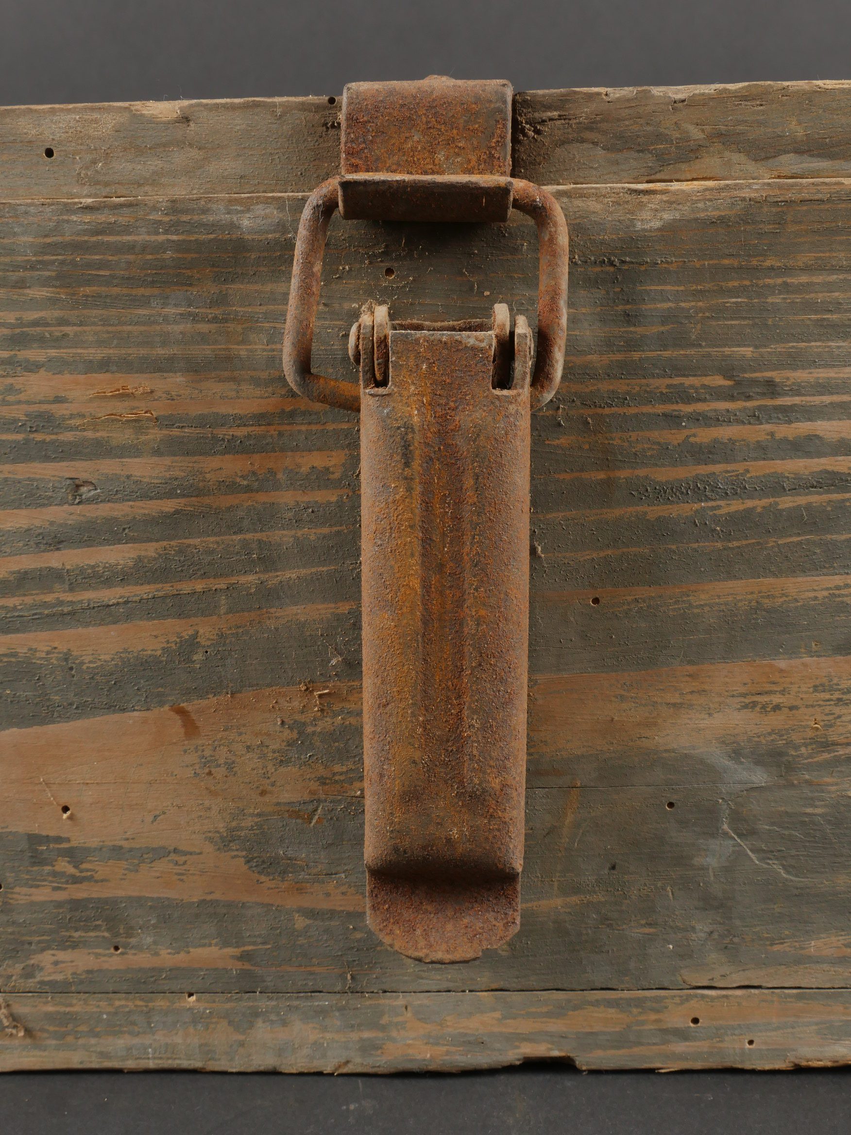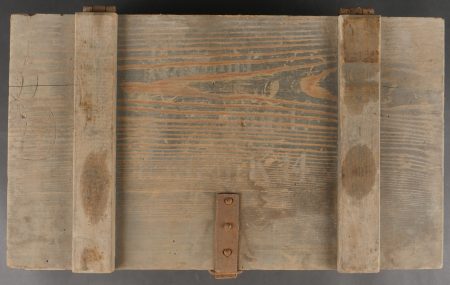 Caisse allemande pour douilles 10cmK14. Caisse en peinture Feldgrau, cales à l’intérieur, manque les poignées
