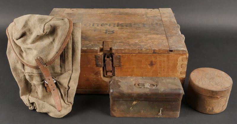 Caisse et boîte allemandes et sacoche. Patronenkasten 88, boîte de charge de 12 cm WG, une sacoche en toile à identifier