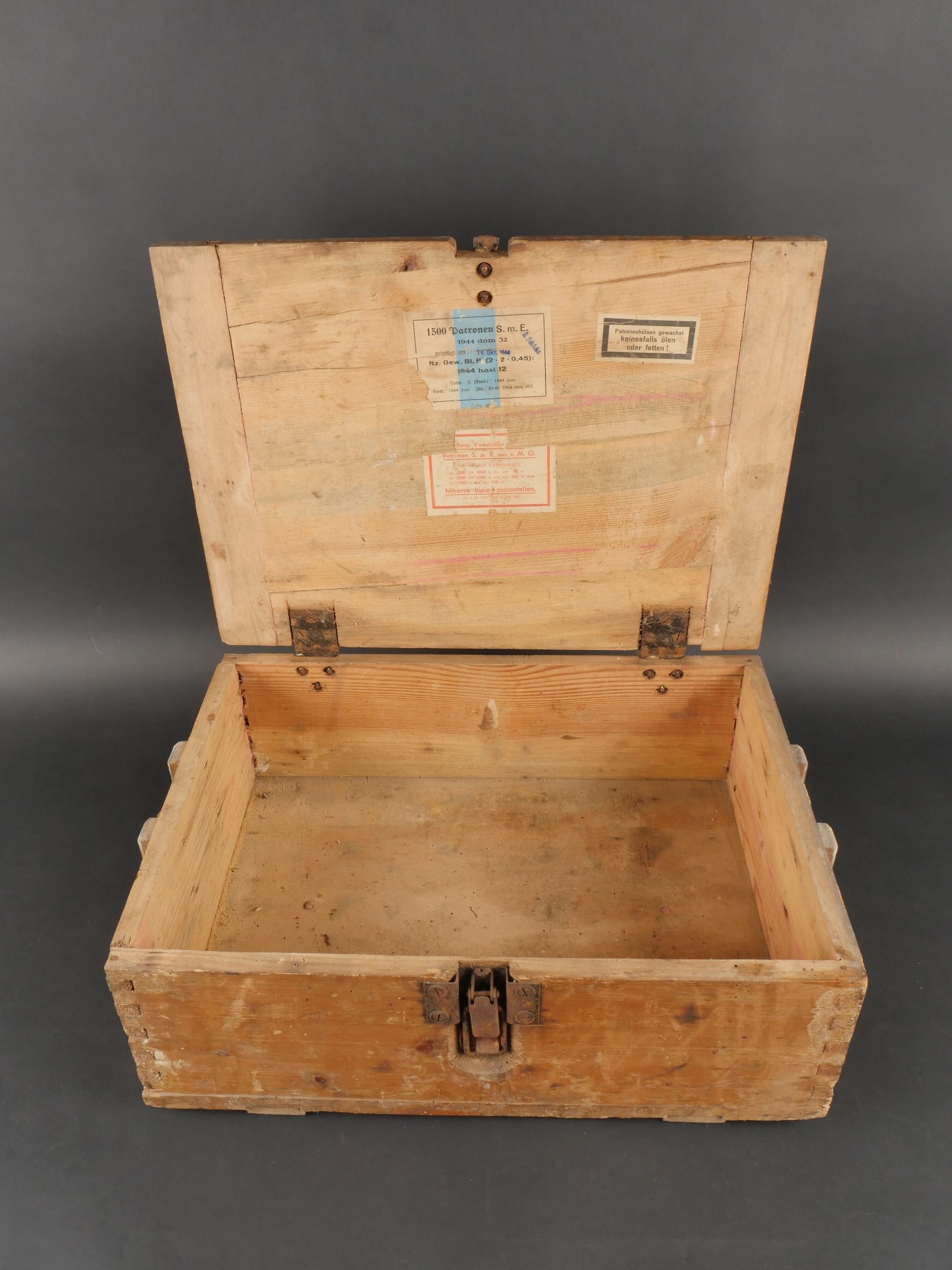 Détails de la vente >Caisse et boîte allemandes et sacoche. Patronenkasten 88, boîte de charge de 12 cm WG, une sacoche en toile à identifier