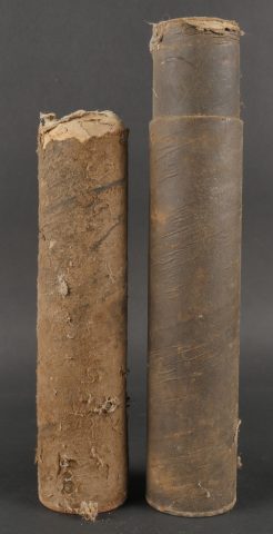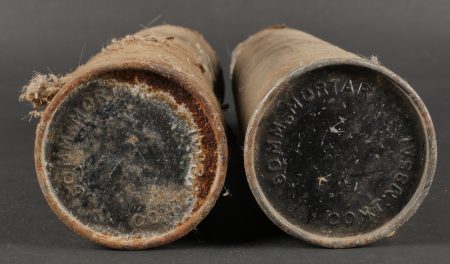 Caisse et containers US. Caisse pour 2 douilles de 75 ou 105 mm à déterminer, sans couvercle, 2 parties de container pour mortier de 60 mm, un couvercle de container métallique pour 105 mm