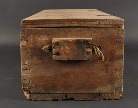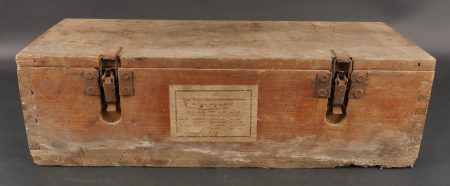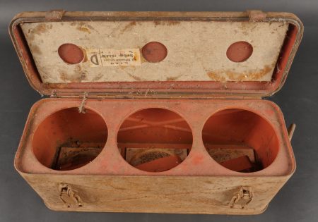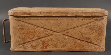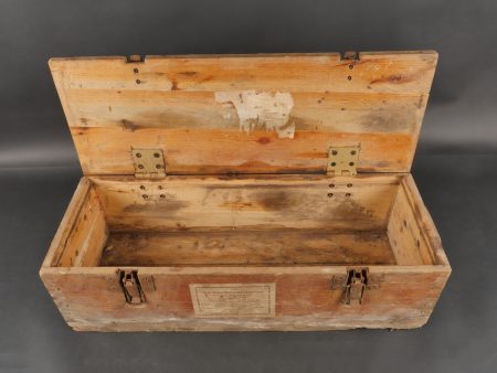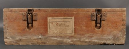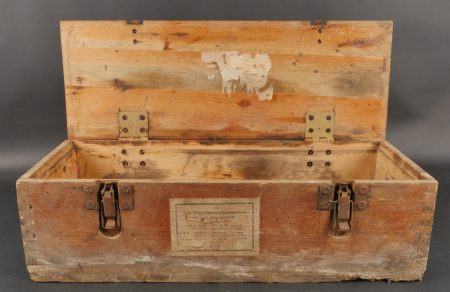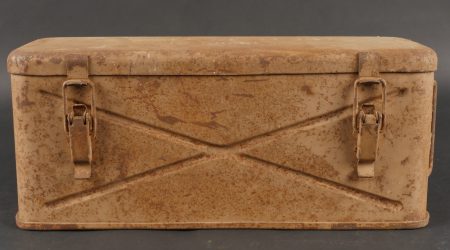 Caisses allemandes pour 2cm incendiaires et Kart LeFH18. Caisse pour 2cm incendiaire de 1944 avec une belle étiquette à l’intérieur. Une caisse pour douilles de Le.F.H.18 en tôle peinte... en savoir plus