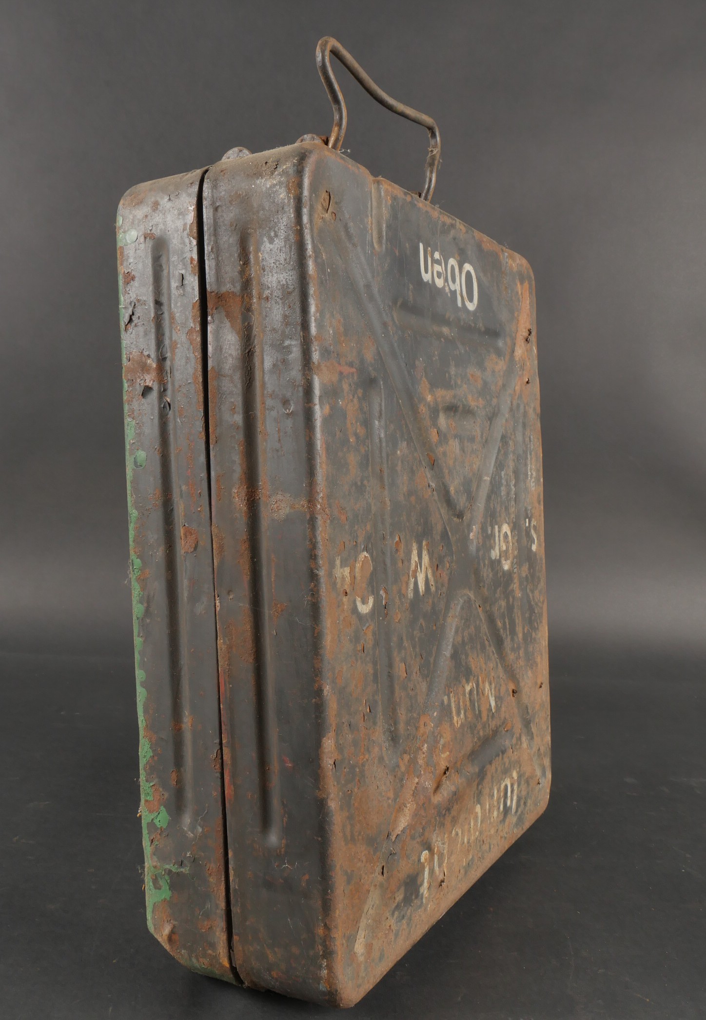 Caisses allemandes pour mortiers 8cm et munitions. Une caisse métal pour obus de 8 cm Granatwerfer, sans rack, et une caisse bois