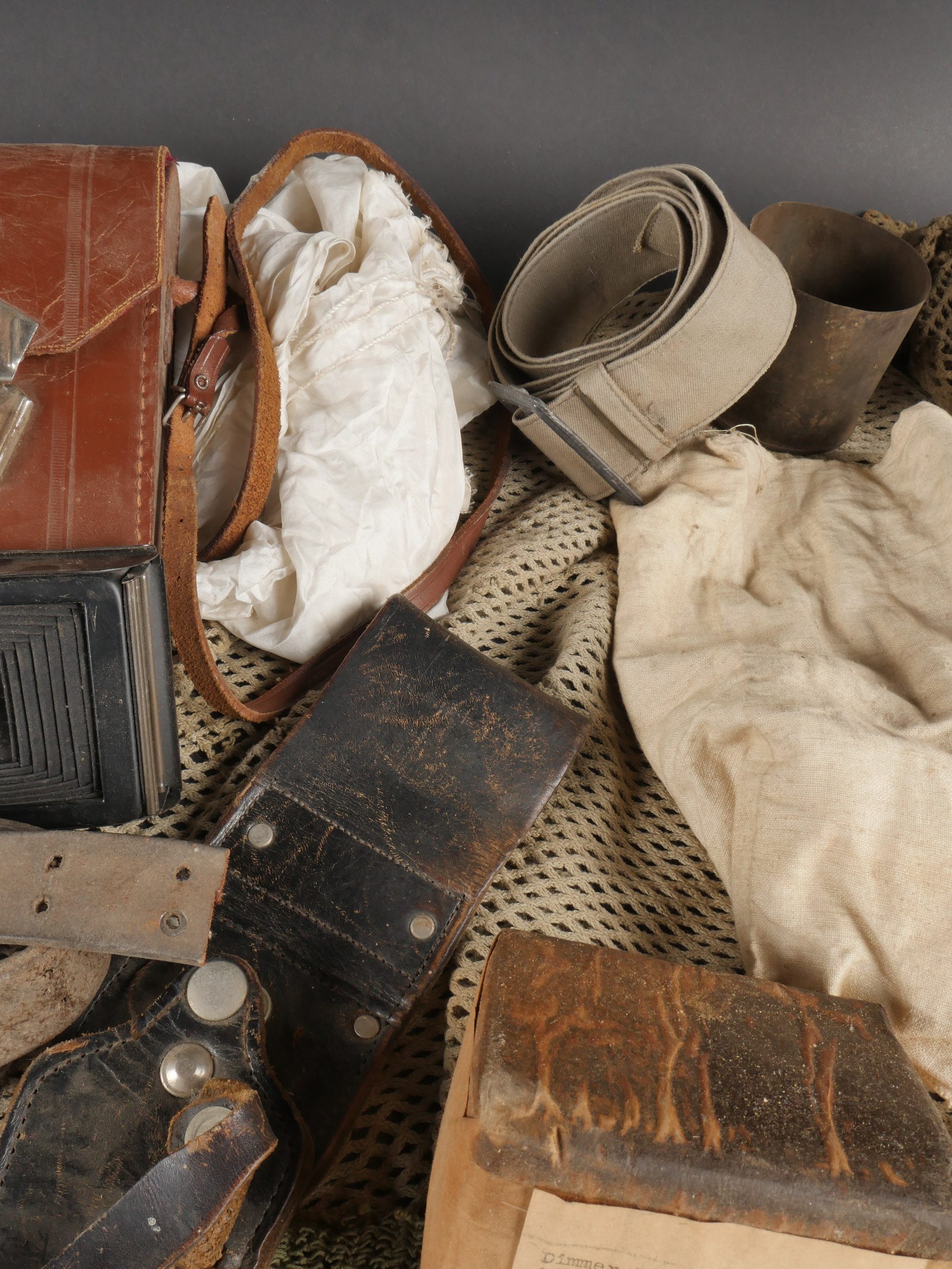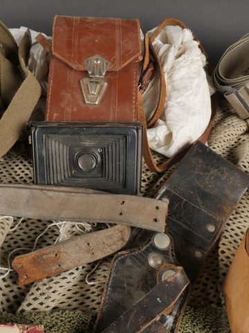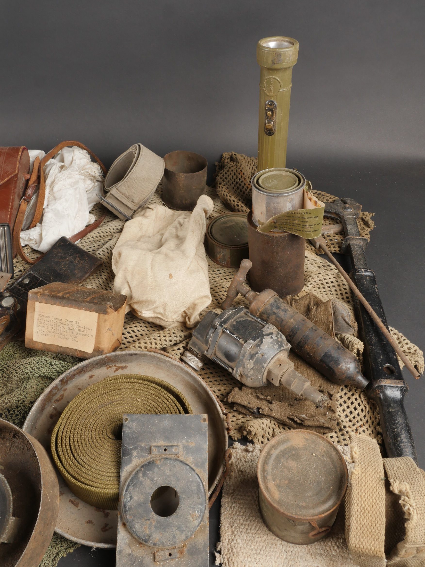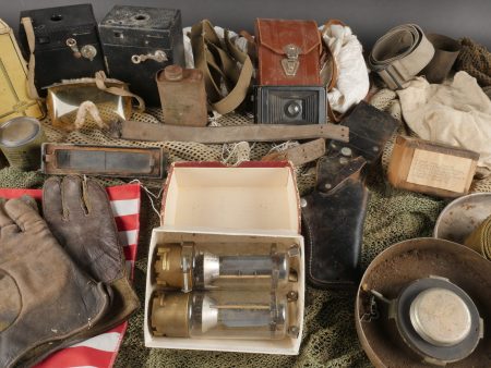 Détails de la vente >Carton surprise US. Rempli de petits objets du GI autour des thèmes de l’hygiène, la nourriture, équipements, effets personnels, appareils photos, outils, lampes radio, filet de... en savoir plus