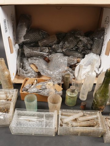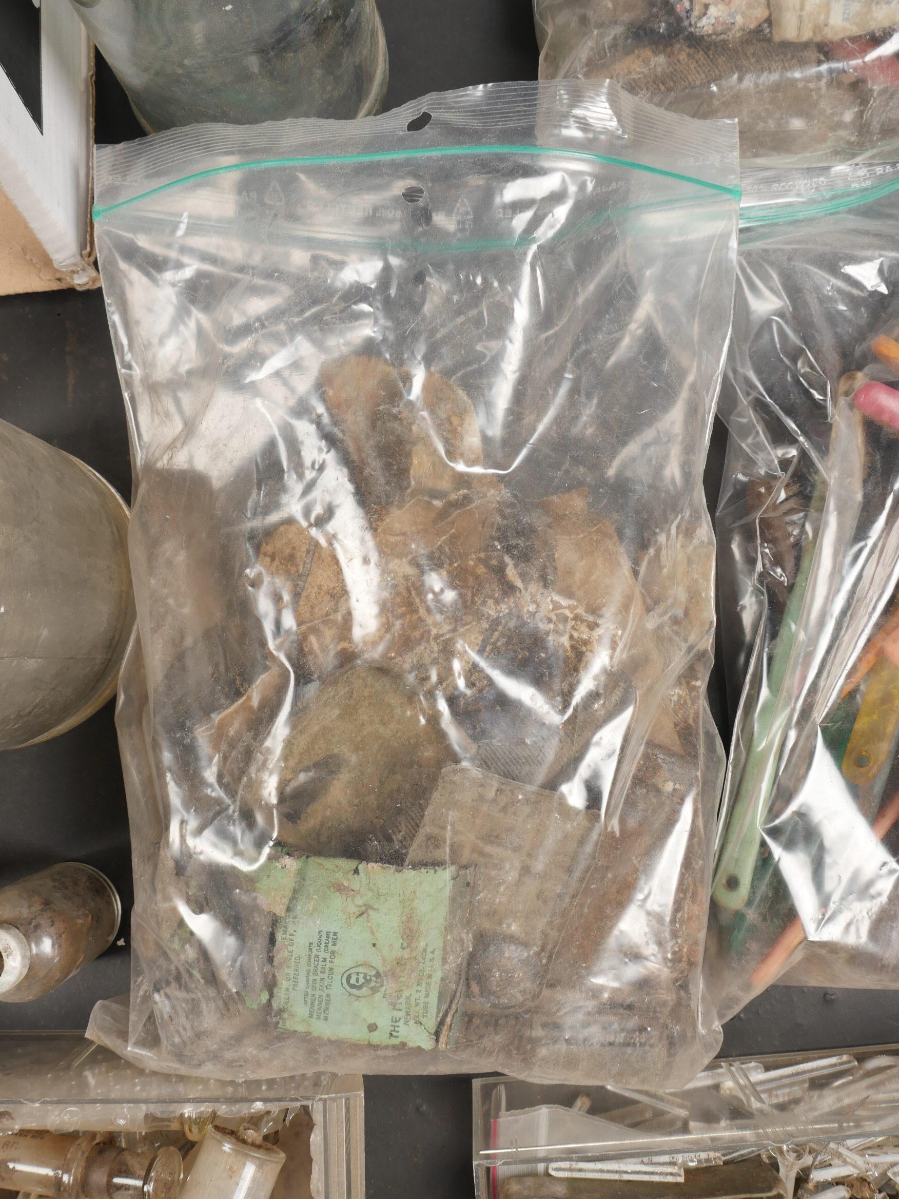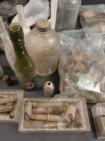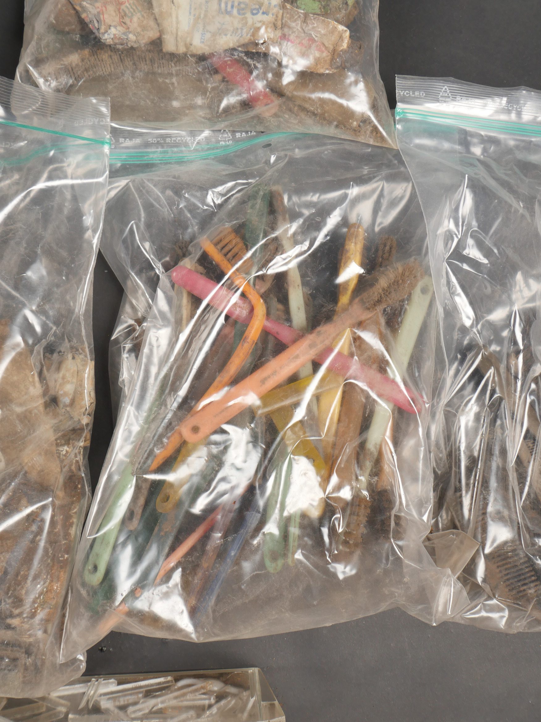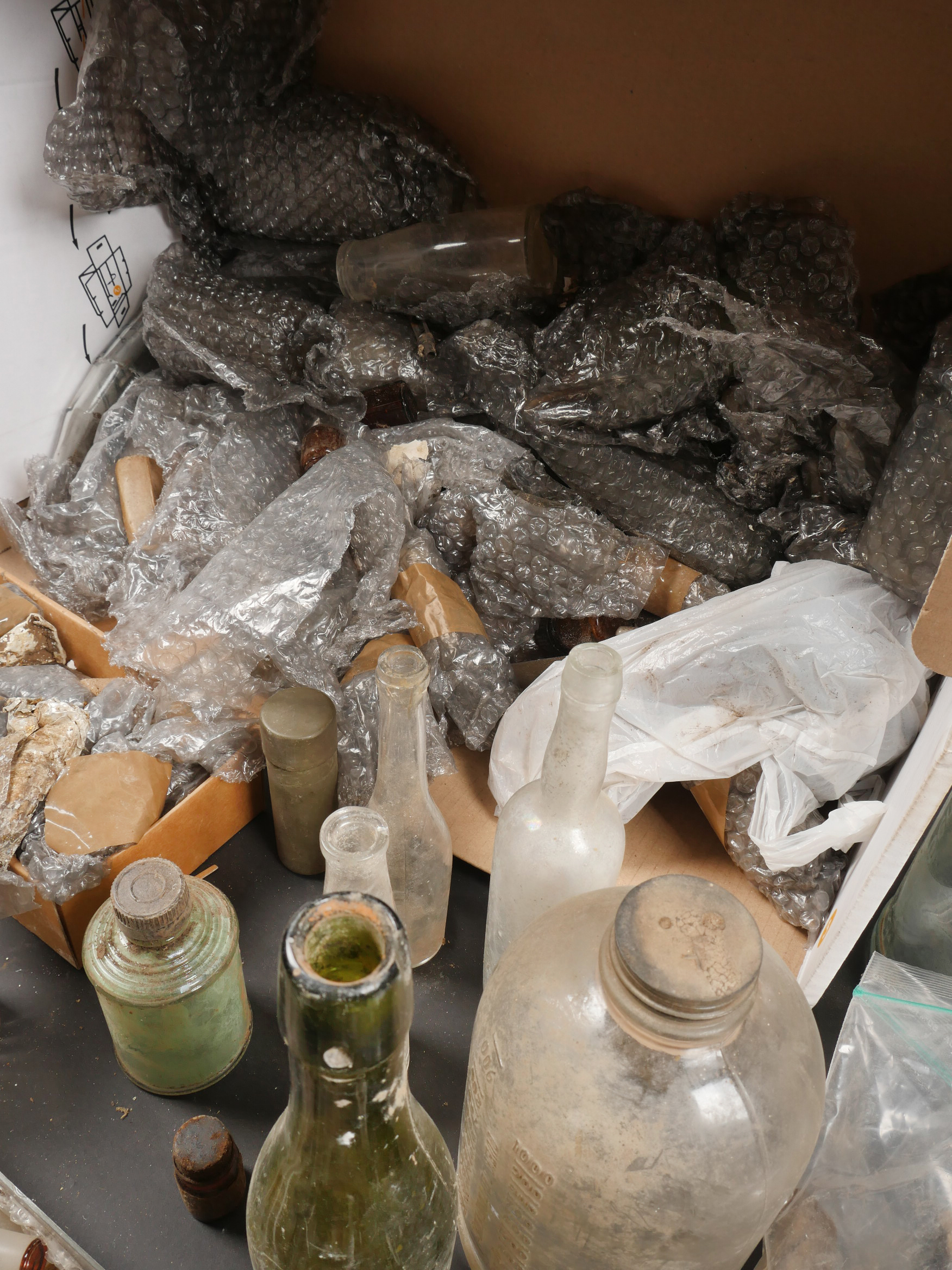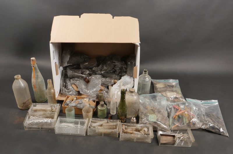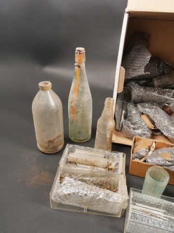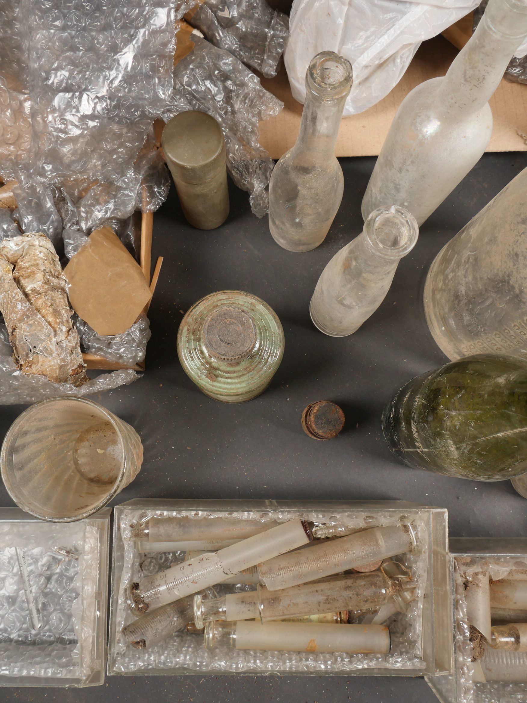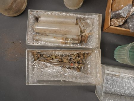 Enorme lot terrain de l’hôpital de la 101st Airborne. Un carton de 70 litres plein ! Rempli d’objets retrouvés sur le terrain secteur hôpital de la 101st Airborne US. Du médical et des objets personnels. Des flacons, fioles, bouteilles, seringues, tubes avec purificateur d’eau, boites d’onguents, des couverts, des brosses à dents, des tubes de dentifrice, etc…émouvantes reliques du champ de bataille