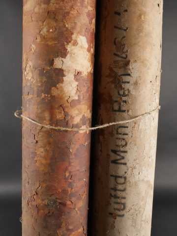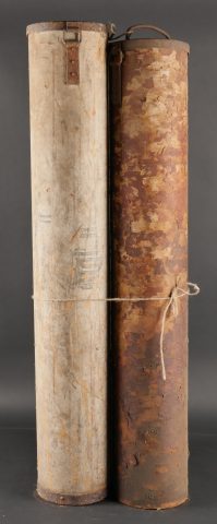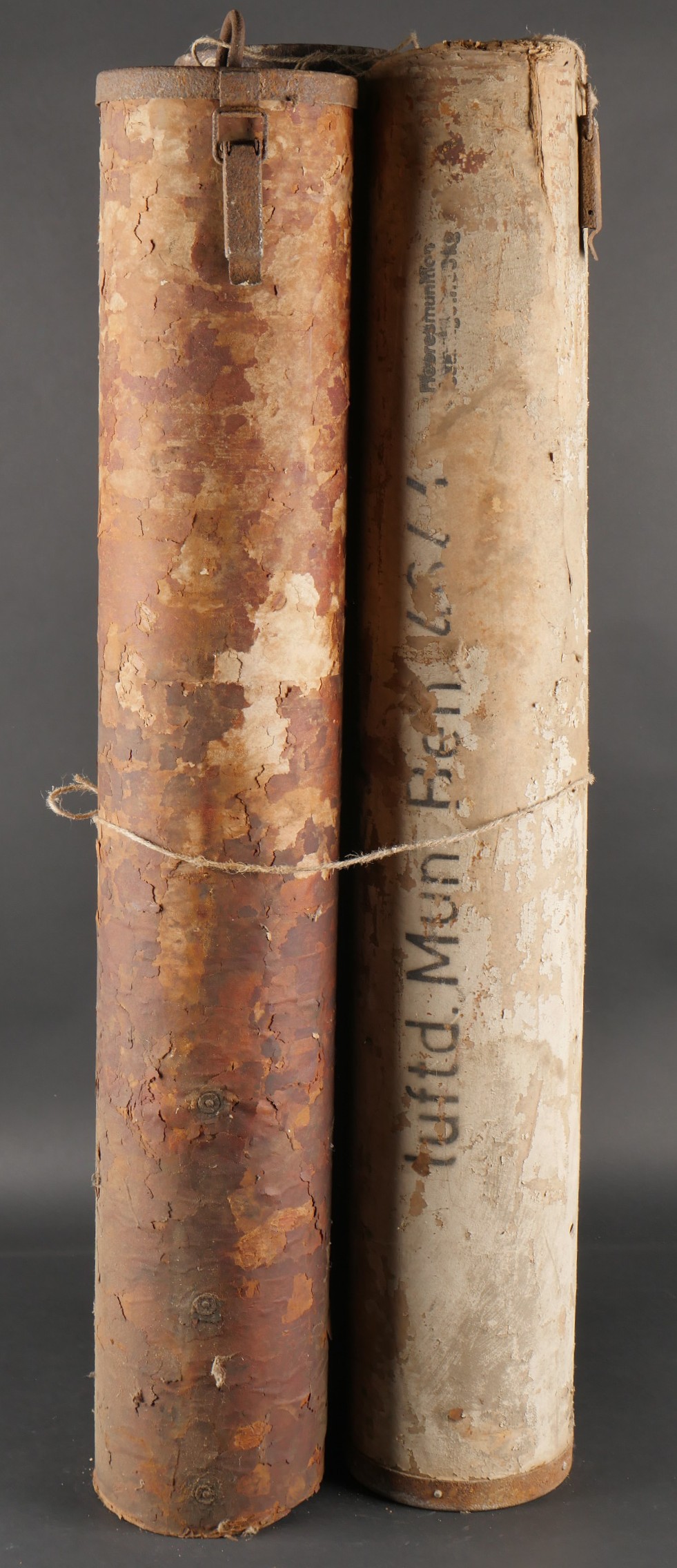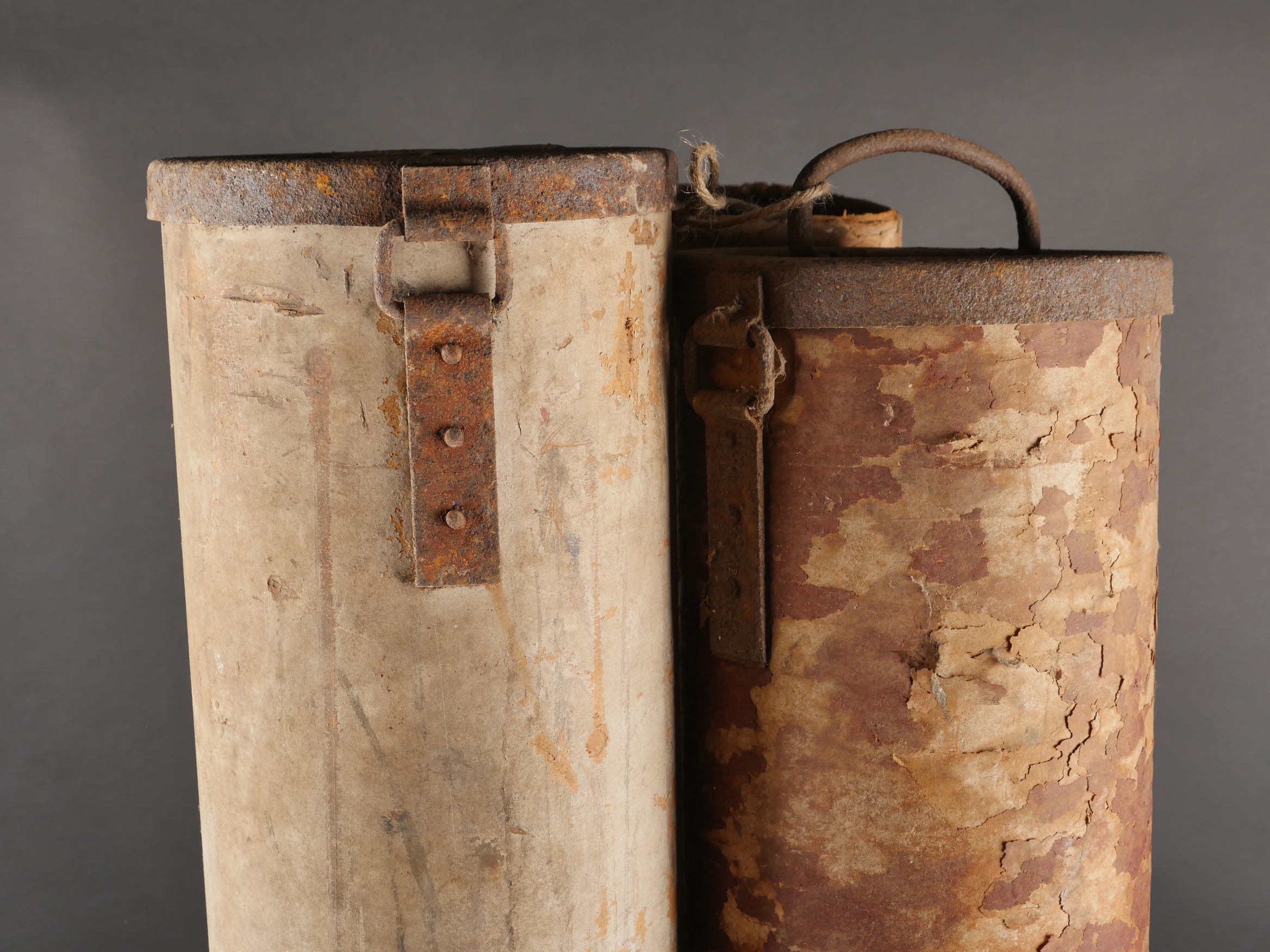 Ensemble de 3 containers allemands de 15 cm WGR NEBELWERFER. En carton, un complet en bon état avec reste d’étiquette. Un en mauvais état avec couvercle mais sans fond. Et un troisième légèrement déformé sans couvercle. Peu courant